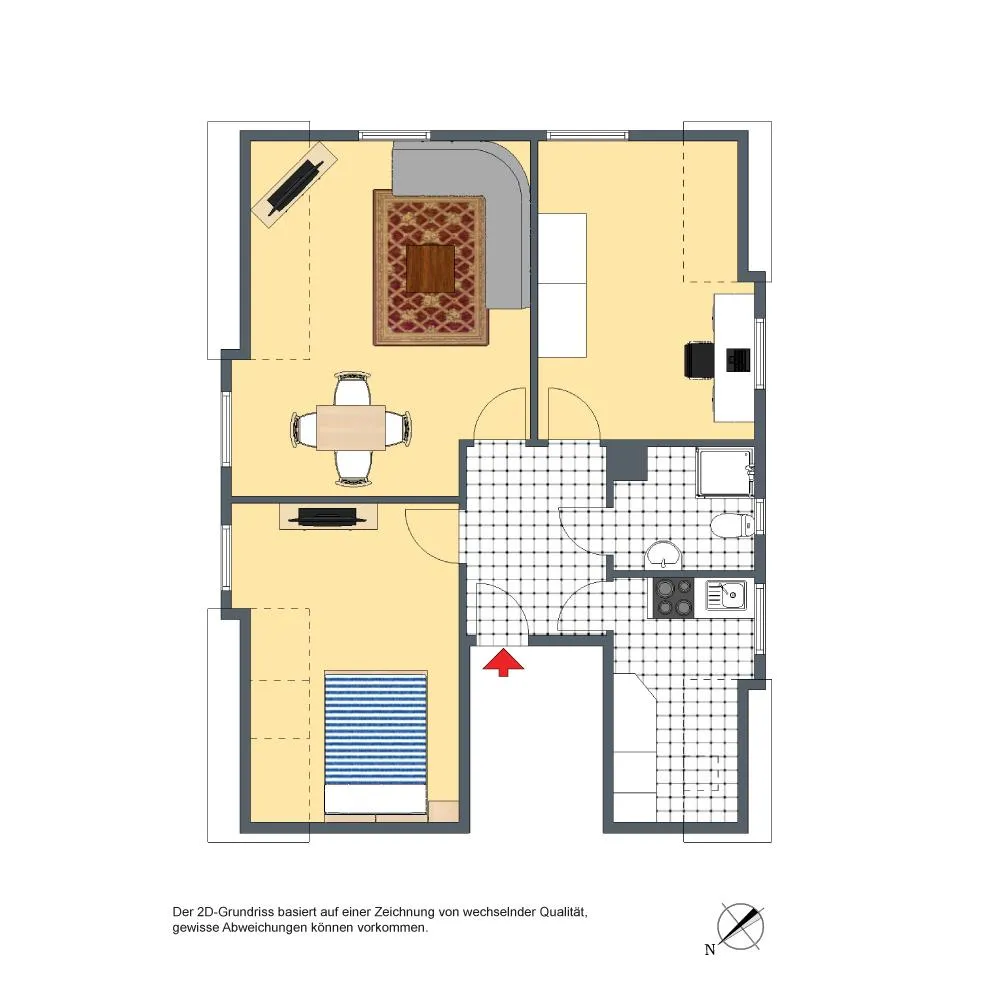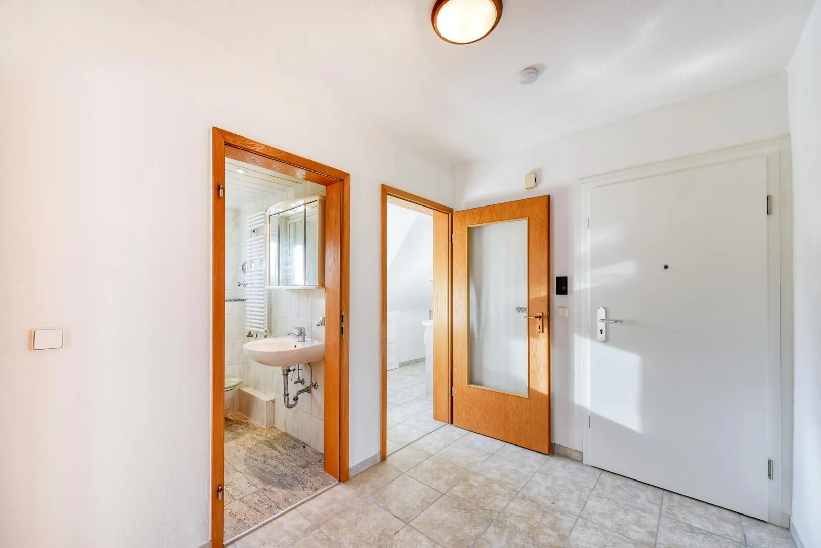 Der Grundriss ist gut. Alle Räume sind direkt von der Diele begehbar. Das Badezimmer verfügt über ein Fenster.