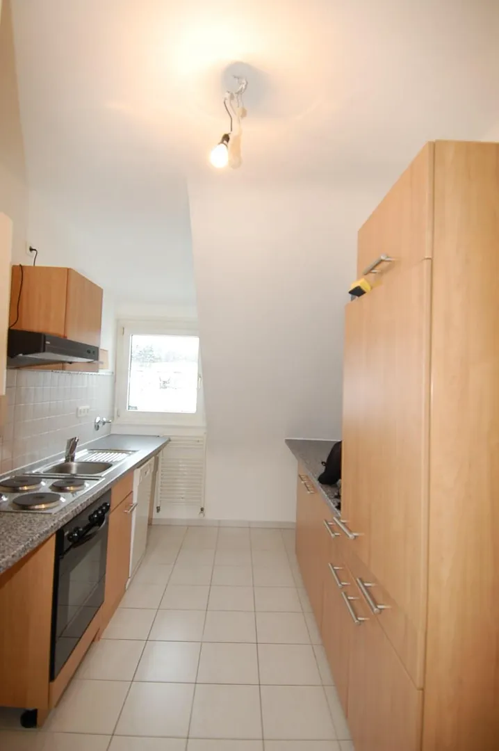 Die Küche ist mit einer schönen Einbauküche ausgestattet. Diese verfügt über alle notwendigen Elektrogeräte und ist bereits im Mietpreis enthalten. Ebenso befindet sich in der Küche der Waschmaschinenanschluss.