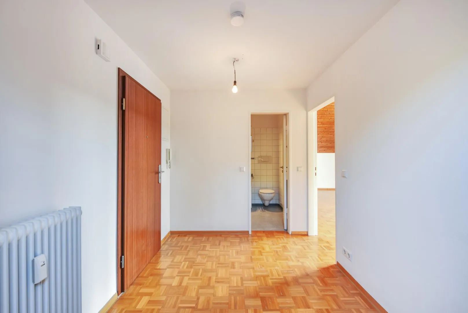 Über eine große Diele ist der Wohnbereich begehbar. Die Diele und das Zimmer sind mit Parkett ausgestattet.