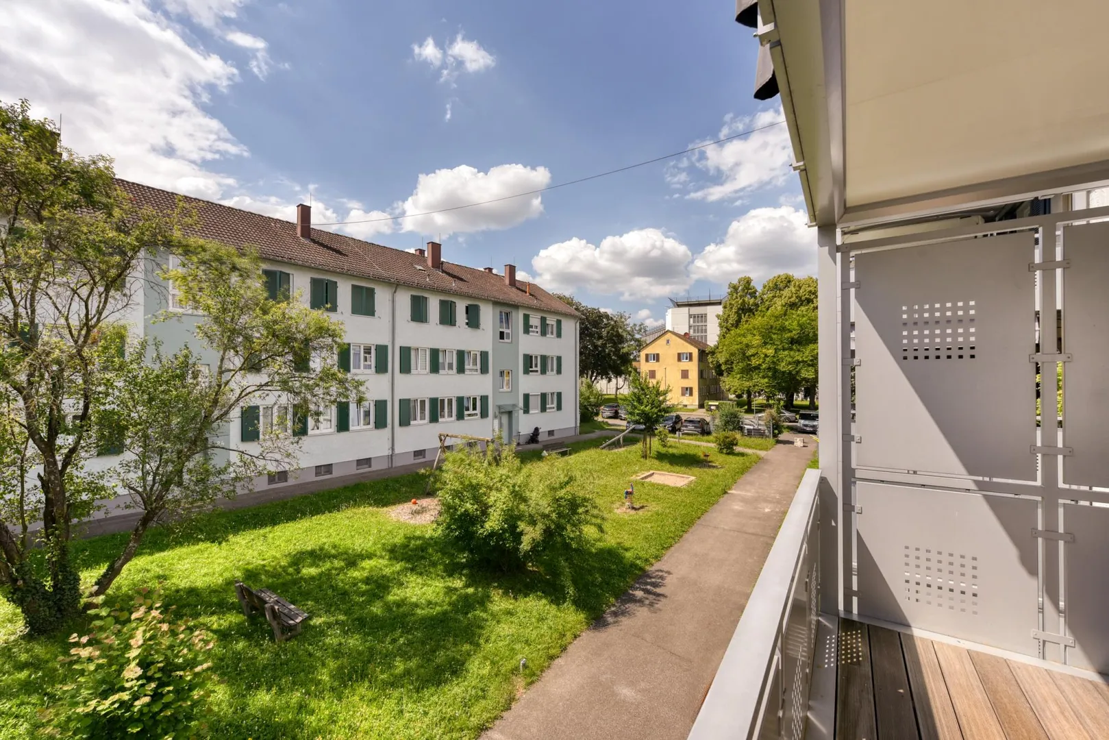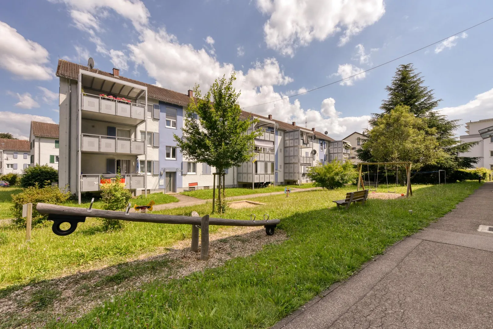 Gemeinschaftlich gibt es einen Waschraum, einen Trockenraum sowie einen Kinderspielplatz.