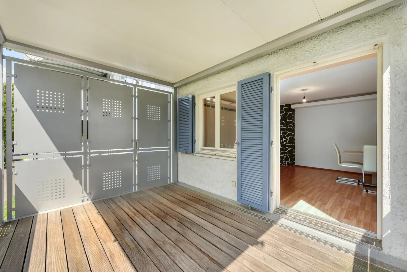 Die Holzfenster von 1994 sind mit Klappläden ausgestattet.