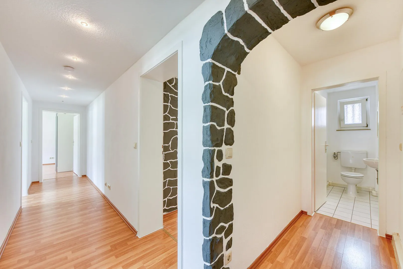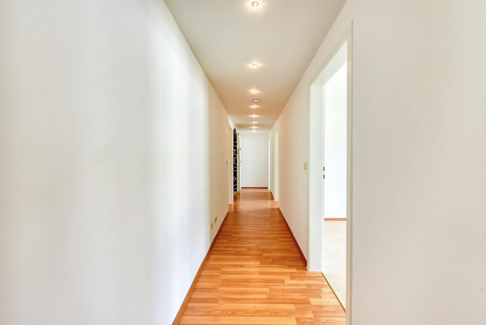 Die Decke im Flur ist abgehängt und mit Belichtung ausgestattet.