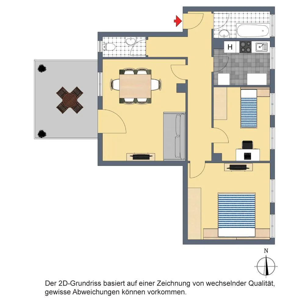 Die vorhandenen Möbel können bei Bedarf in der Wohnung verbleiben.