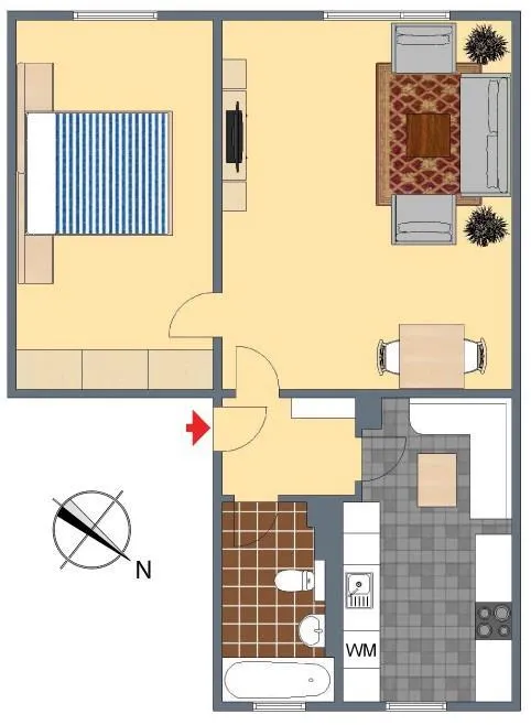 Die Zimmer sind nach Süd-Westen ausgerichtet. Die Küche und das Badezimmer nach Nord-Osten.