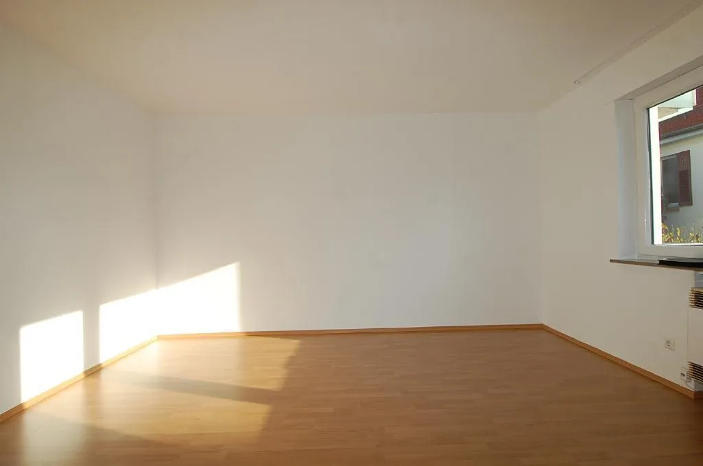 Der helle Wohnbereich ist nach Süd/Osten ausgerichtet und mit Laminatboden, einer großen Fensterfläche und frisch gestrichenen Raufasertapeten ausgestattet.
