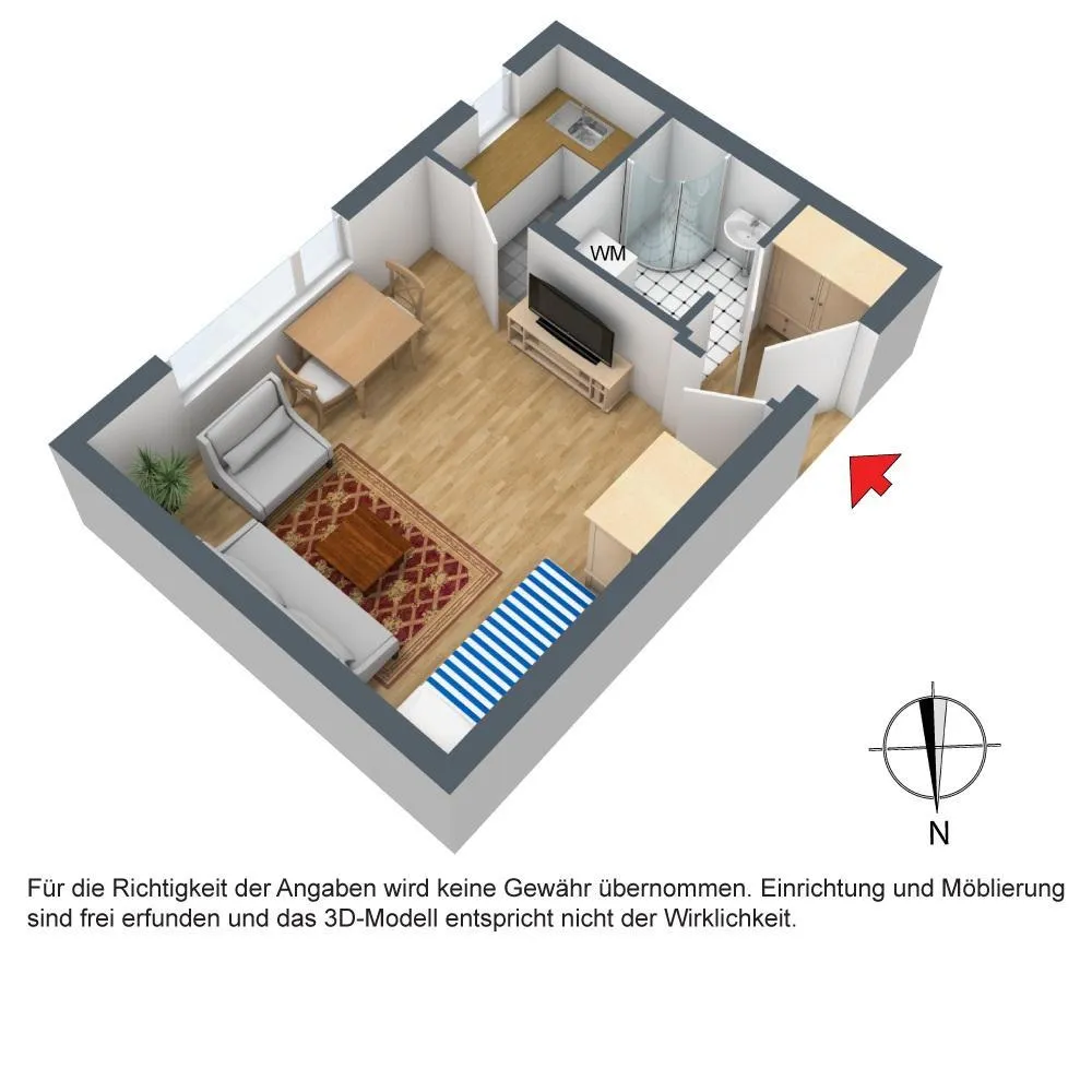 Trotz sorgfältiger Prüfung der im Exposé gemachten Angaben, können wir für die Richtigkeit und Vollständigkeit der Angaben keine Haftung übernehmen. Bitte beachten Sie, dass die Immobilie auf den Bildern größer wirkt als sie in der Realität ist.