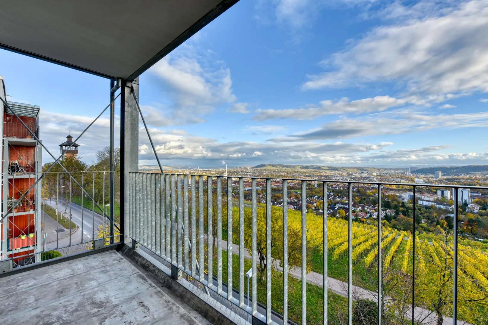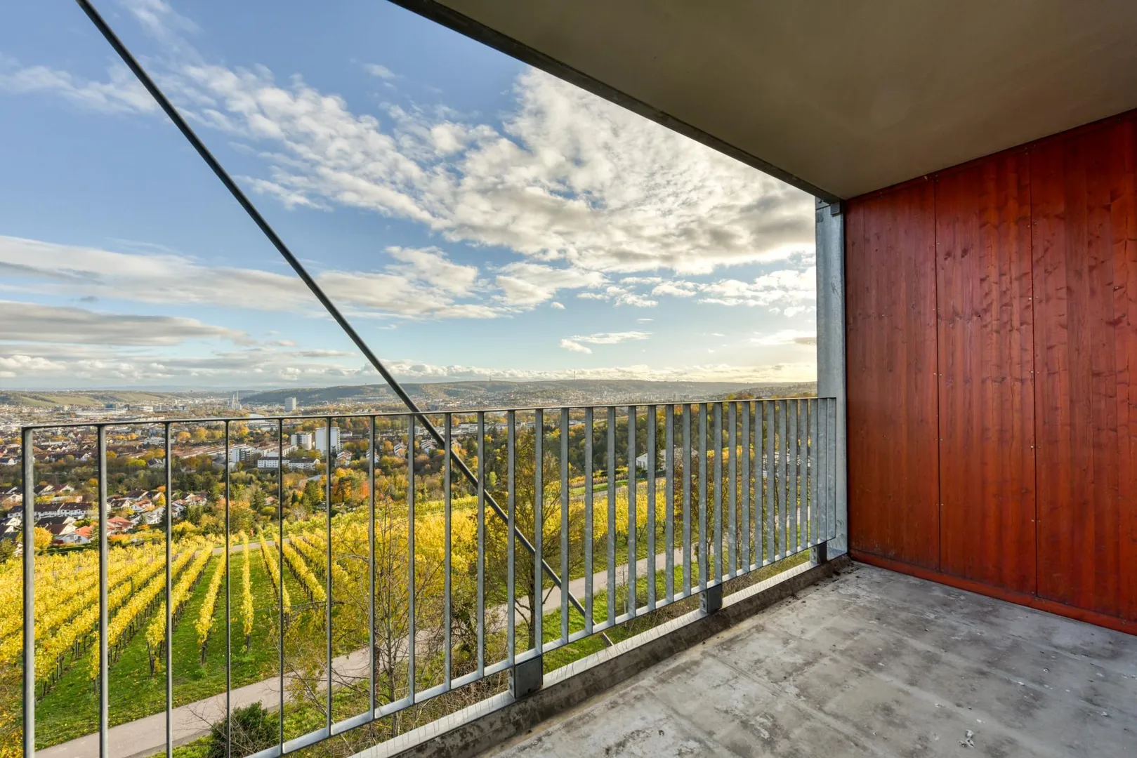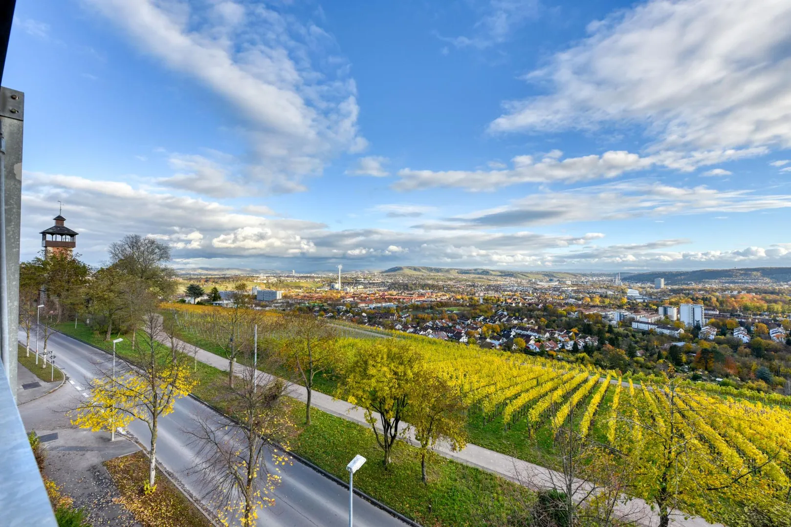 Die Wohnung befindet sich im Stadtbezirk Bad Cannstatt und im Stadtteil Burgholzhof. Das Haus befindet sich in erster Reihe direkt an der Auerbachstraße und den Weinbergen mit fantastischem Fernblick. Die Wohnung geht über die komplette Hauslänge und verfügt über zwei Balkone mit einer Panoramafernsicht nach Süd-Osten sowie mit einer Fernsicht nach Nord-Westen.
