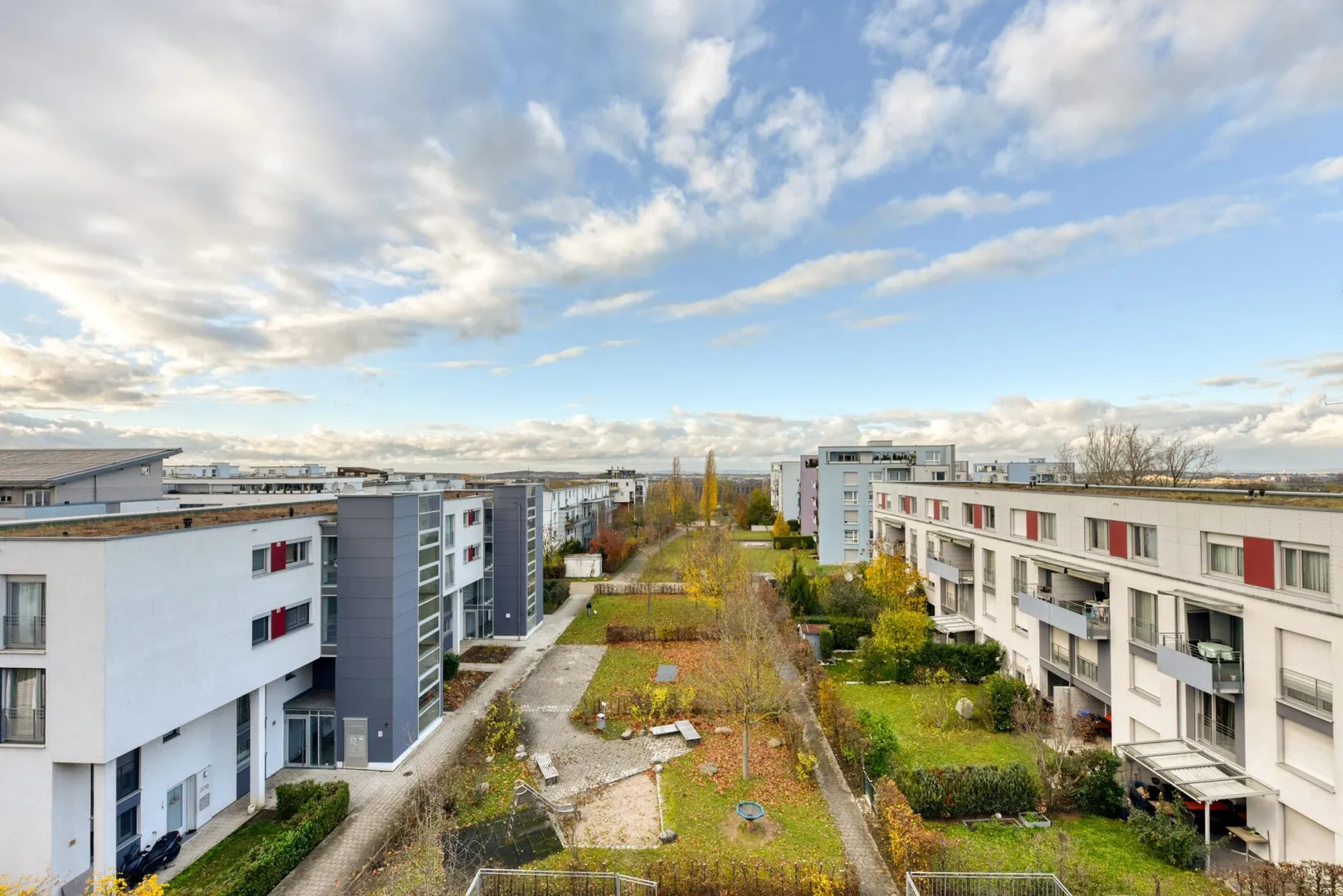 Es ist ausgestattet mit Vollwärmeschutz, Nahwärme-Blockheizkraftwerk mit Kraft-Wärme-Kopplung, Kunststofffenstern, Aufzug und Tiefgarage.