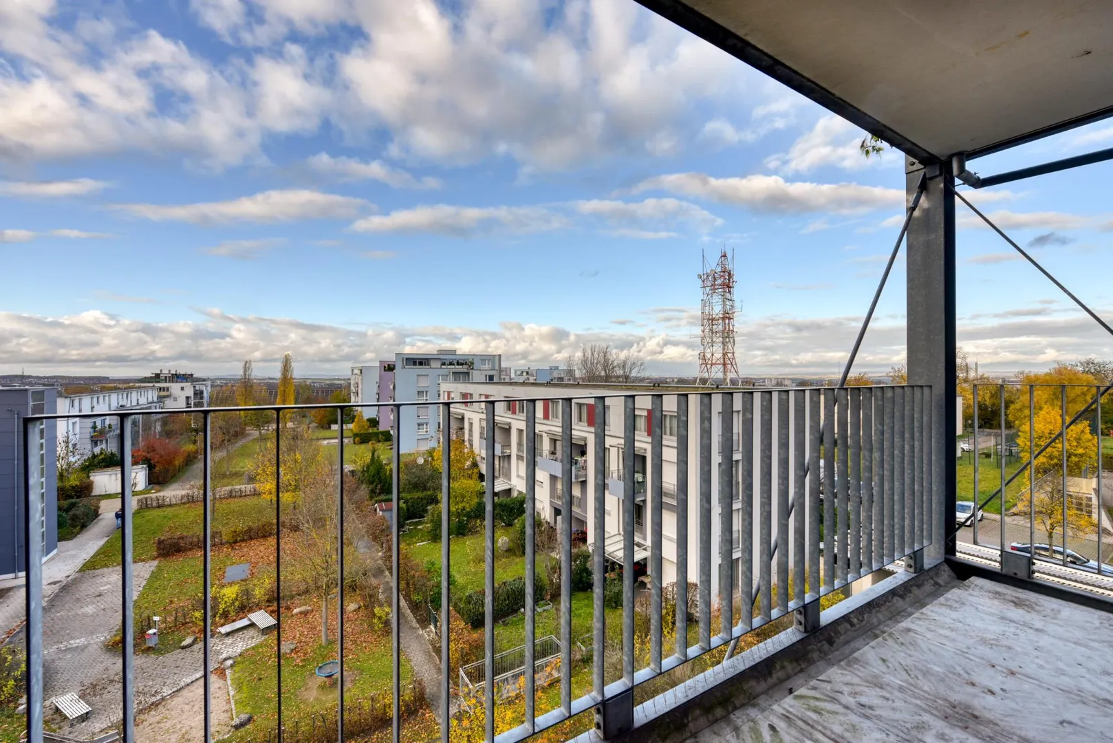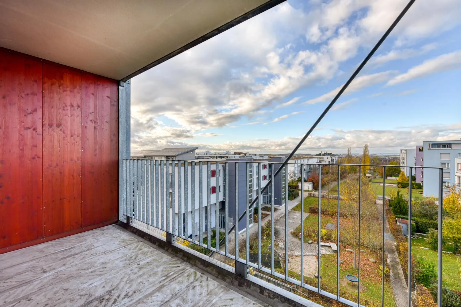 Beide Balkone sind jeweils ca. 8 m² groß, sind überdacht und auf einer Seite wind- und sichtgeschützt. Der Mieter darf sich einen eigenen Boden auf die Balkone legen.