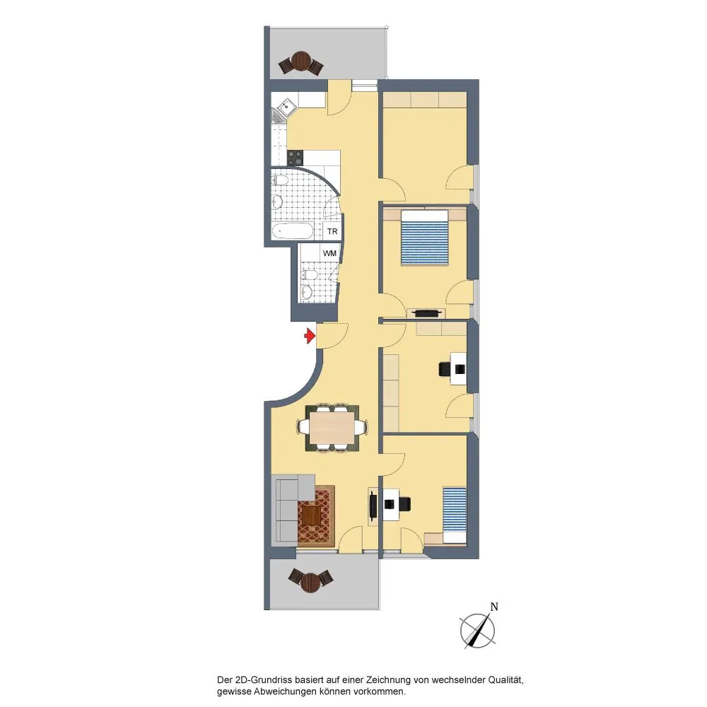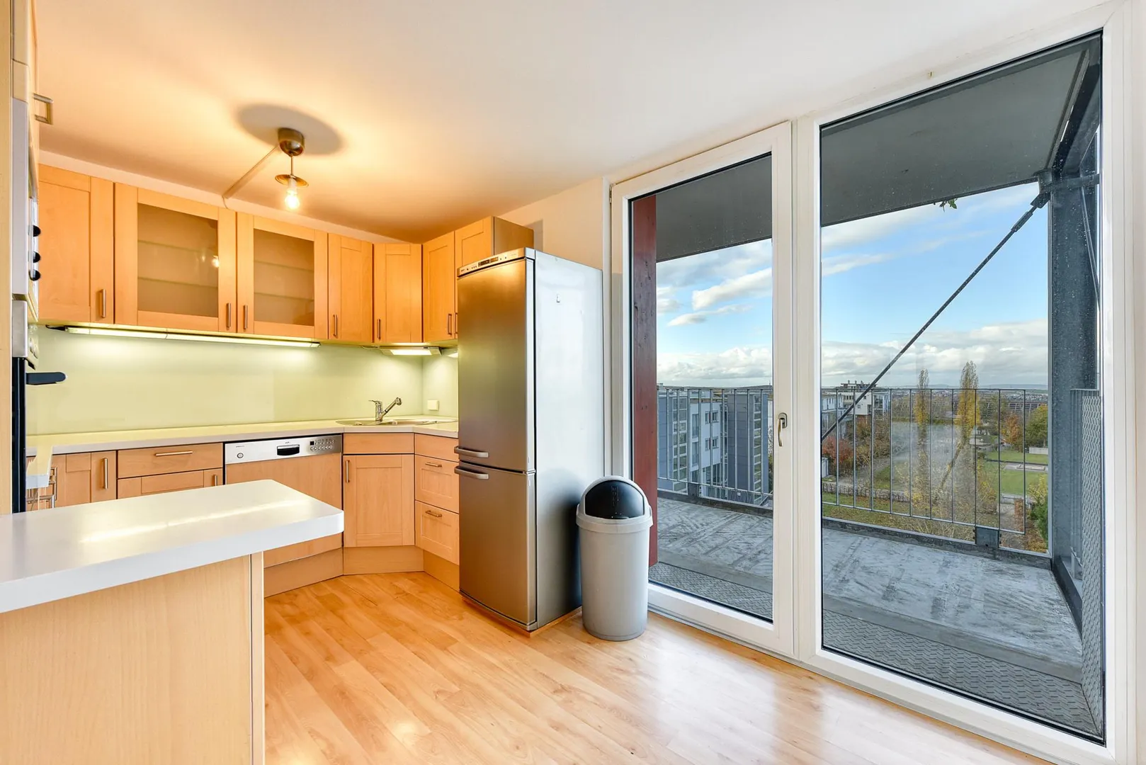 Der Süd/Ost-Balkon ist vom Wohnbereich begehbar. Der Nord/West-Balkon ist vom Küchenbereich begehbar.