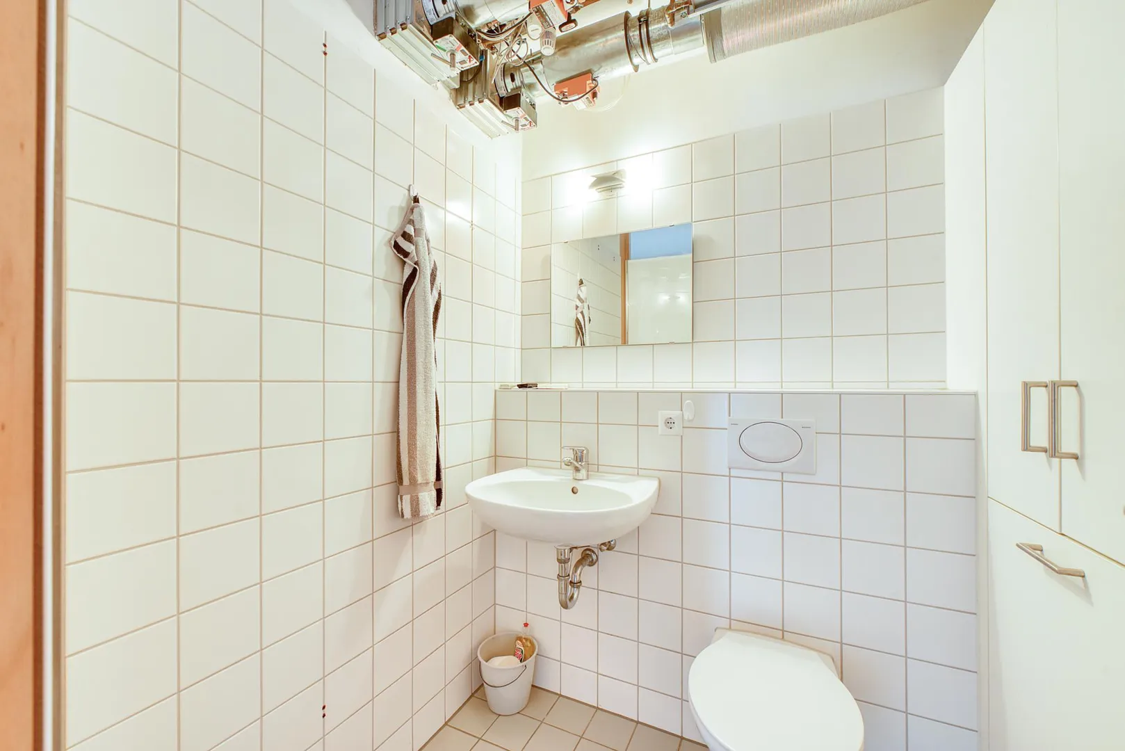 Im Badezimmer befindet sich eine Ecke für einen Trockner. Im Gäste-WC befindet sich der Waschmaschinen-Anschluss.