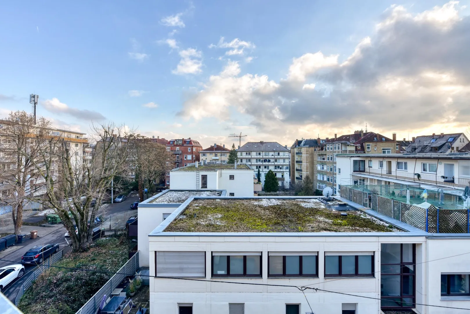 Das Wohnzimmer, der Balkon sowie zwei weitere Zimmer sind zum Innenhof, nach Süden ausgerichtet. Die Küche, das Badezimmer, das WC sowie das Schlafzimmer sind zur Straße, nach Norden ausgerichtet.