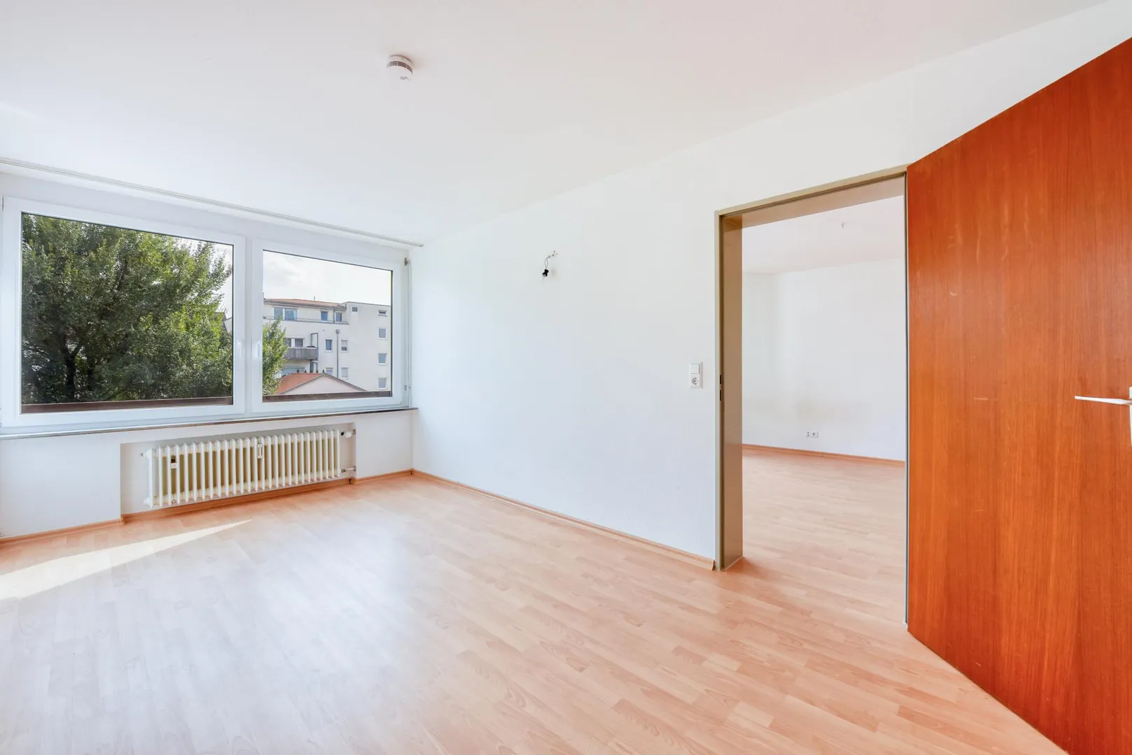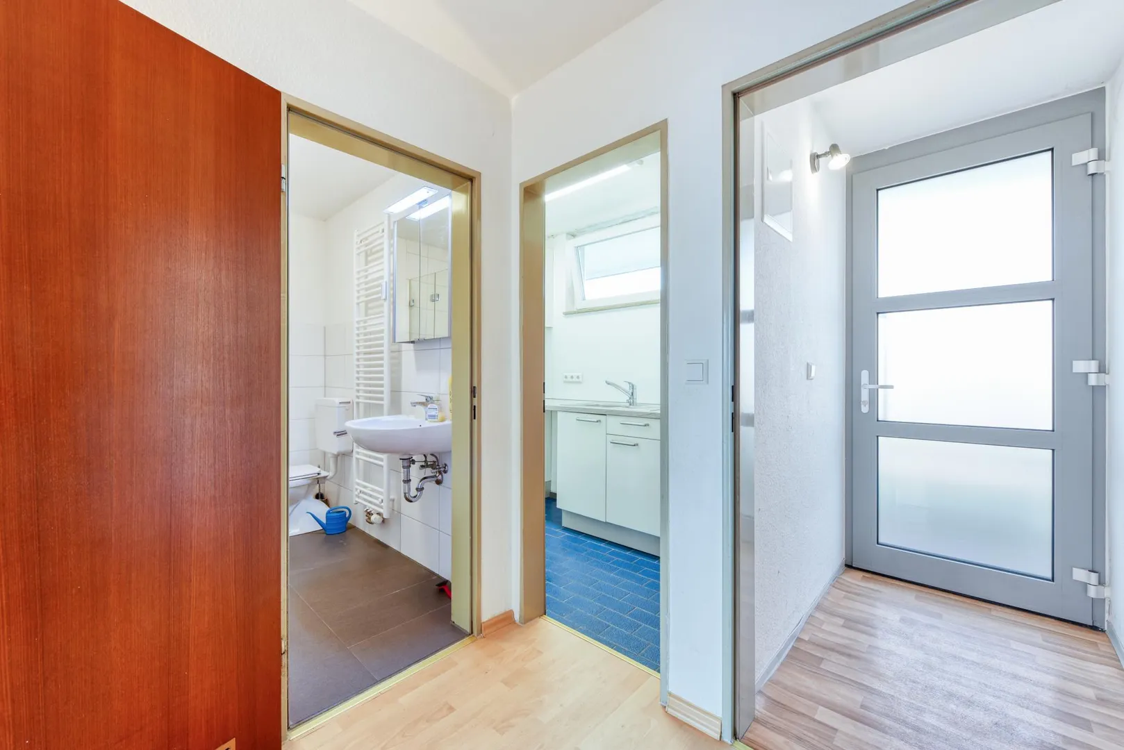 In den Zimmern und im Flur ist Laminat verlegt.