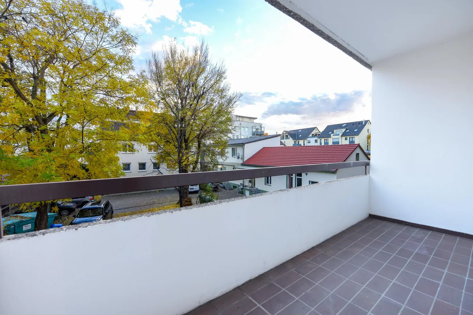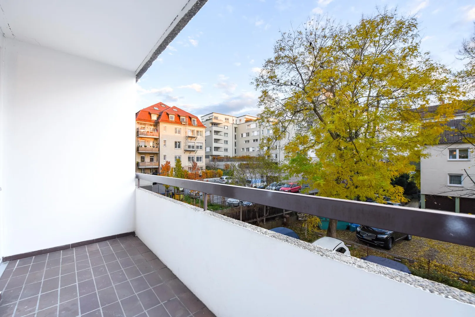 Der ca. 4,5 m² große und überdachte Süd-Balkon (zum Innenhof) ist vom Zimmer begehbar.