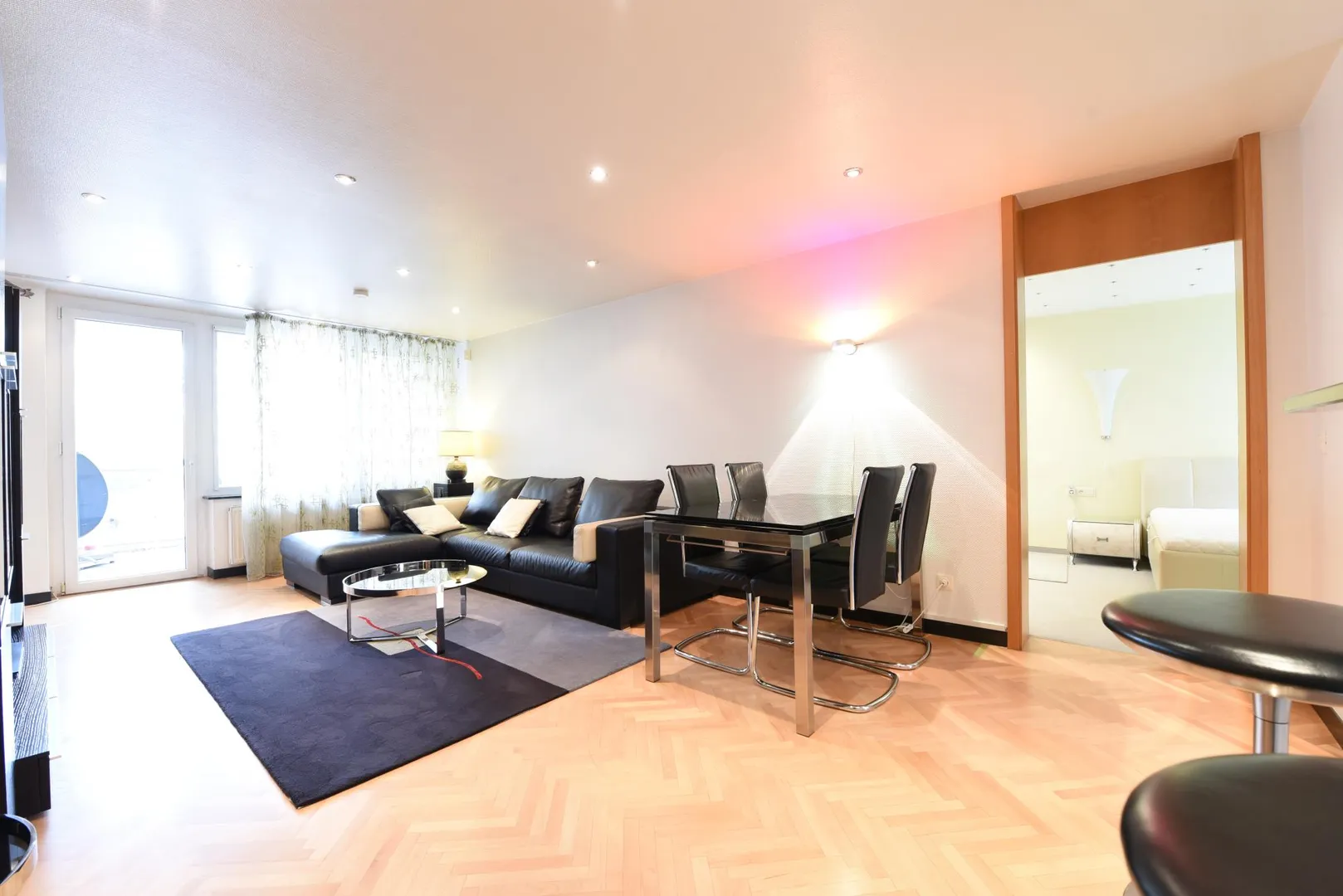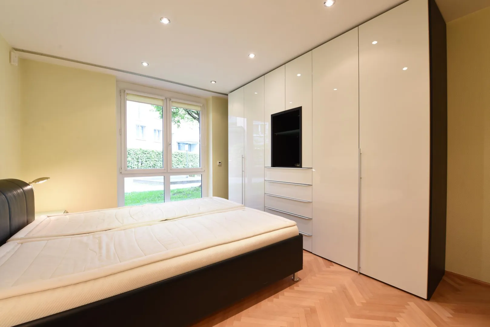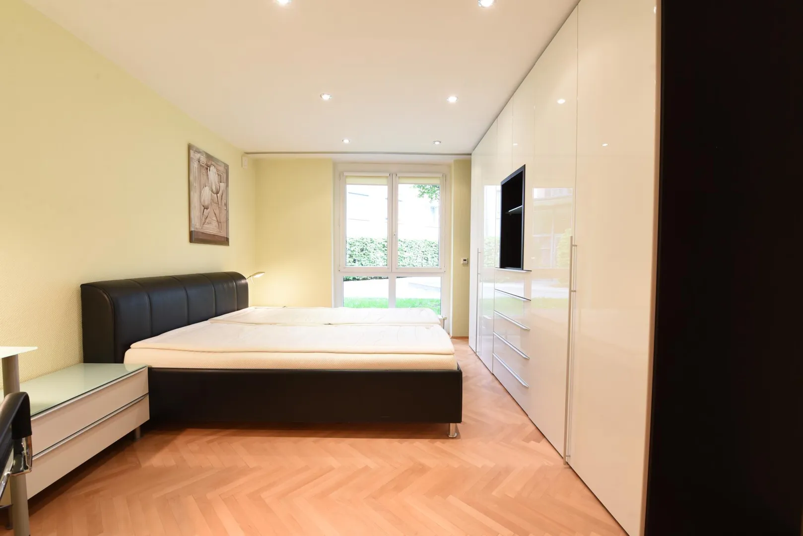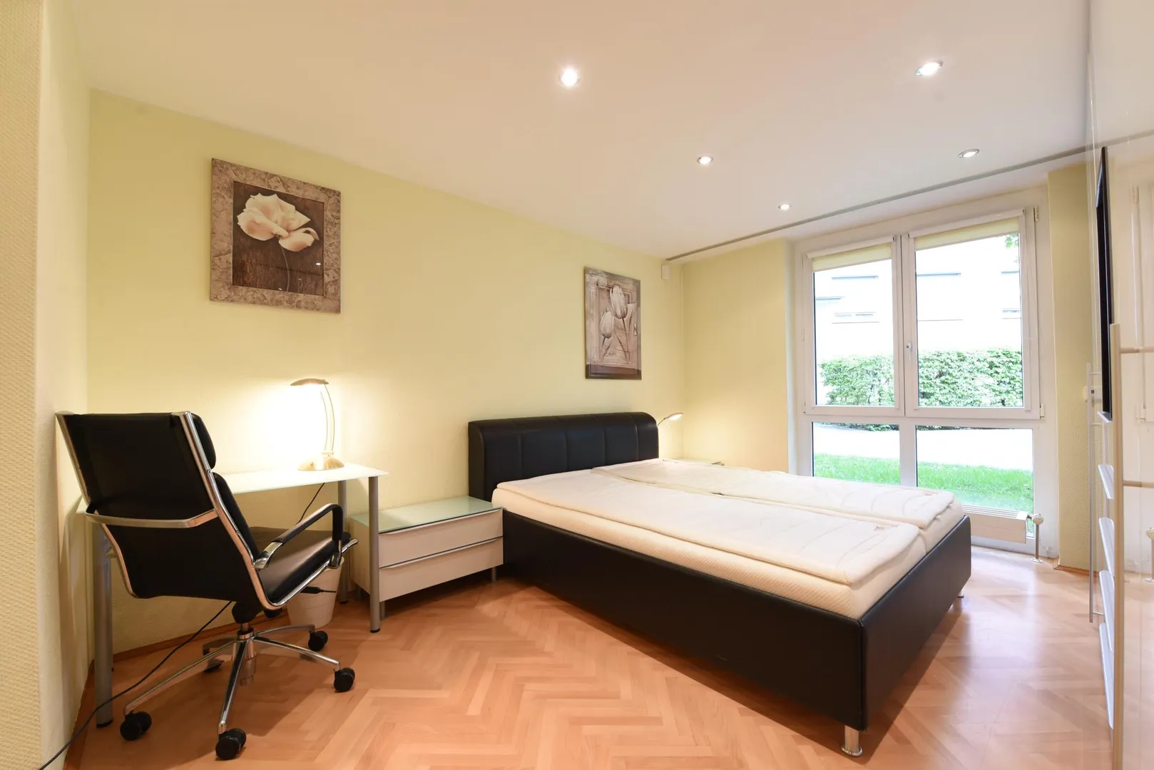 Diese möblierte und hochwertig ausgestattete 4-Zimmer-Wohnung für maximal 2 Personen (2-er WG erlaubt), für mindestens 2 Jahre, befindet sich im Erdgeschoss.
