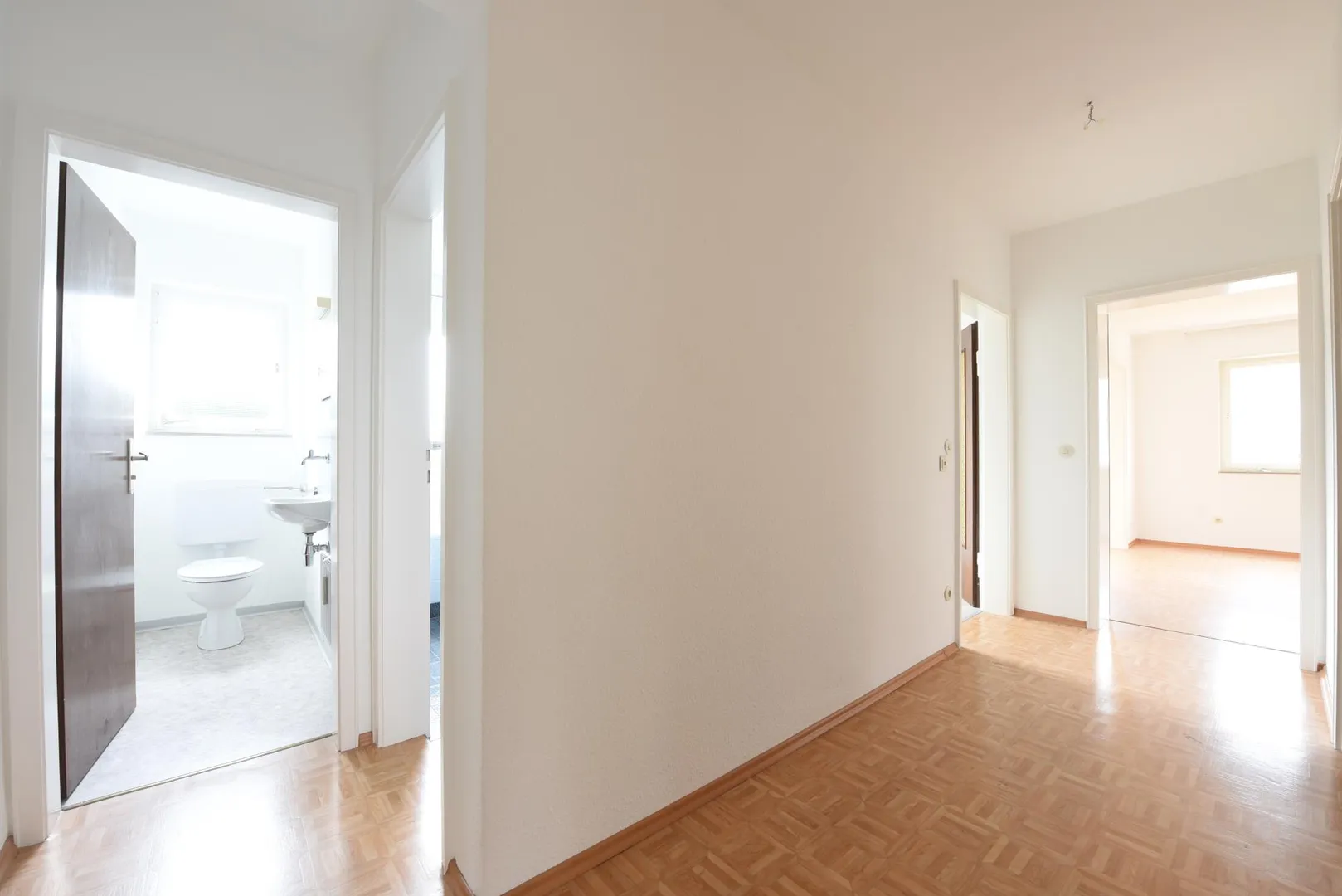 Der Grundriss der Wohnung ist gut. Alle Räume sind direkt vom Flur begehbar. Das Badezimmer sowie das separate WC verfügen über ein Fenster. Der Balkon ist über das Wohnzimmer sowie über das Schlafzimmer begehbar.
