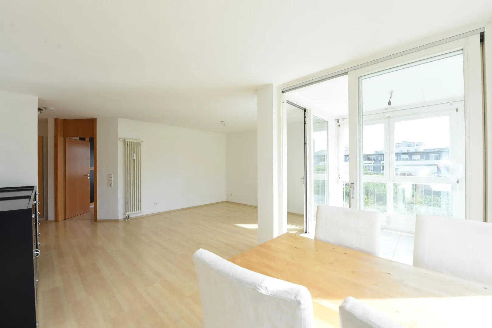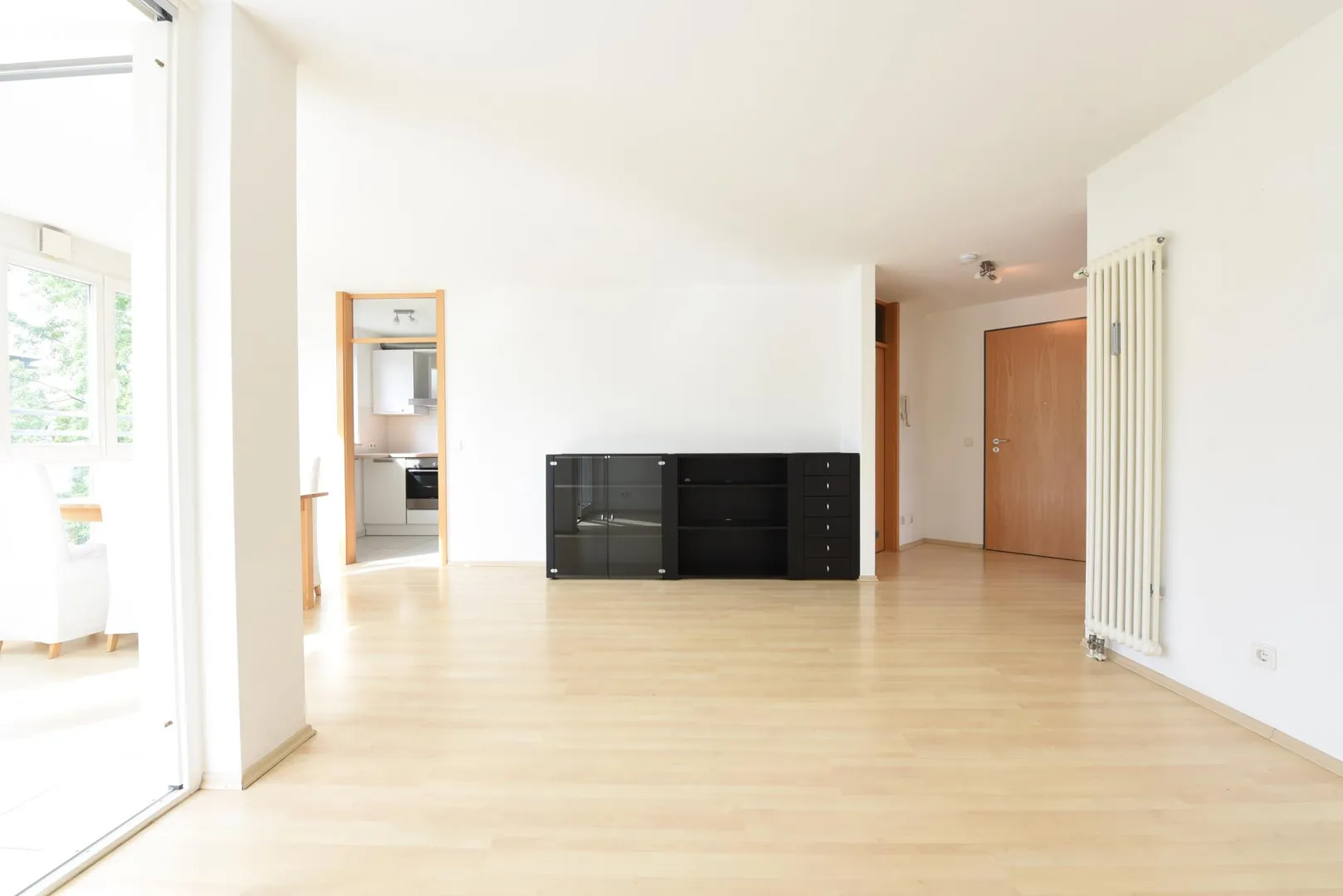 Die Wohnung wird mit einem Schlafzimmerschrank, einem Esstisch mit 4 Stühlen, einem Sideboard im Wohnzimmer und einer Einbauküche vermietet.