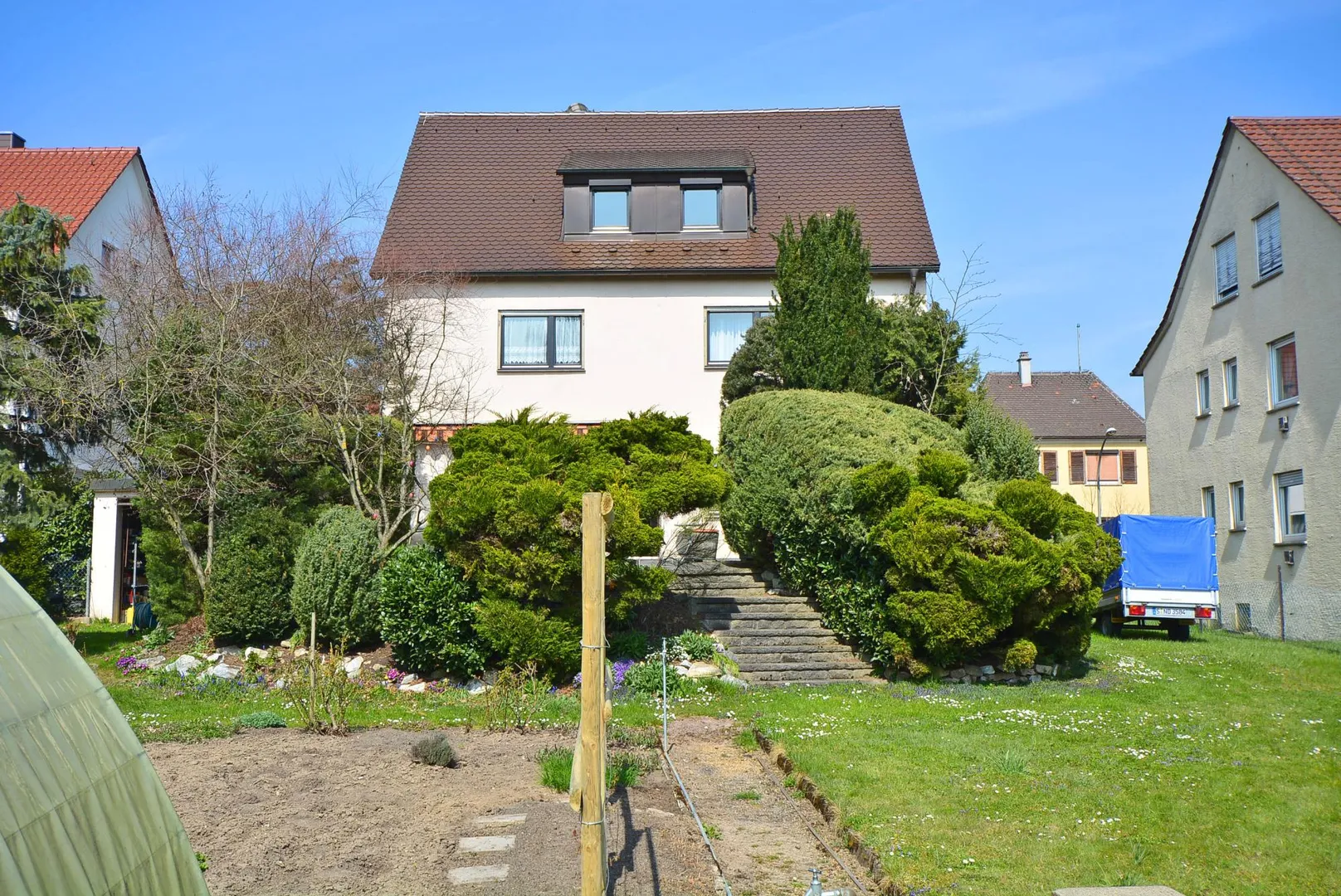 Das Haus befindet sich im östlichen Teil von Stuttgart-Stammheim und liegt ruhig und grün direkt am Feldrand.