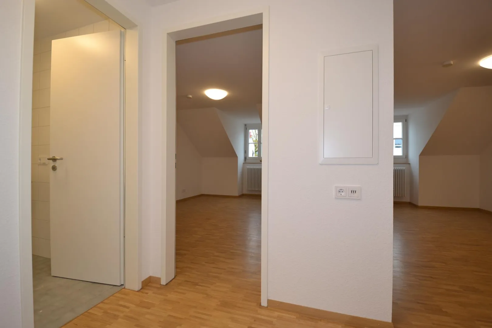 Die Räume sind nach Süden ausgerichtet und mit massiven Parkettboden ausgestattet.