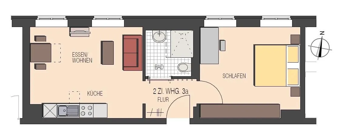 Diese gemütliche 2-Zimmer-Wohnung befindet sich im 1. Obergeschoss.