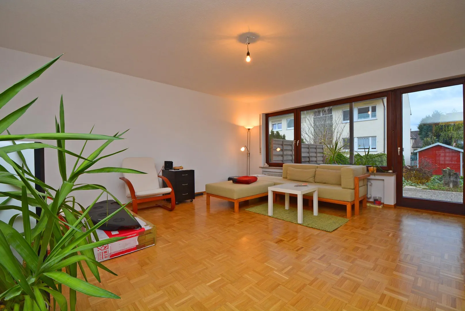 Zur Wohnung gehören ein Abstellraum und ein ca. 20 m² großer und beheizter Hobbyraum im Untergeschoss sowie zwei Kfz-Stellplätze vor dem Haus.