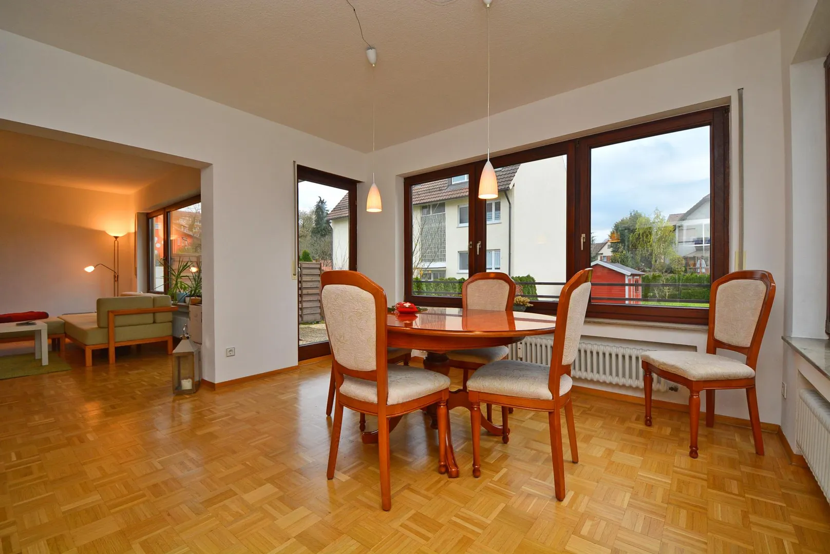 Diese hochwertig ausgestattete 4 ½ Zimmer-Maisonette-Wohnung befindet sich im Erdgeschoss/Obergeschoss eines 2-Familien-Reiheneckhauses mit großzügigem Garten.