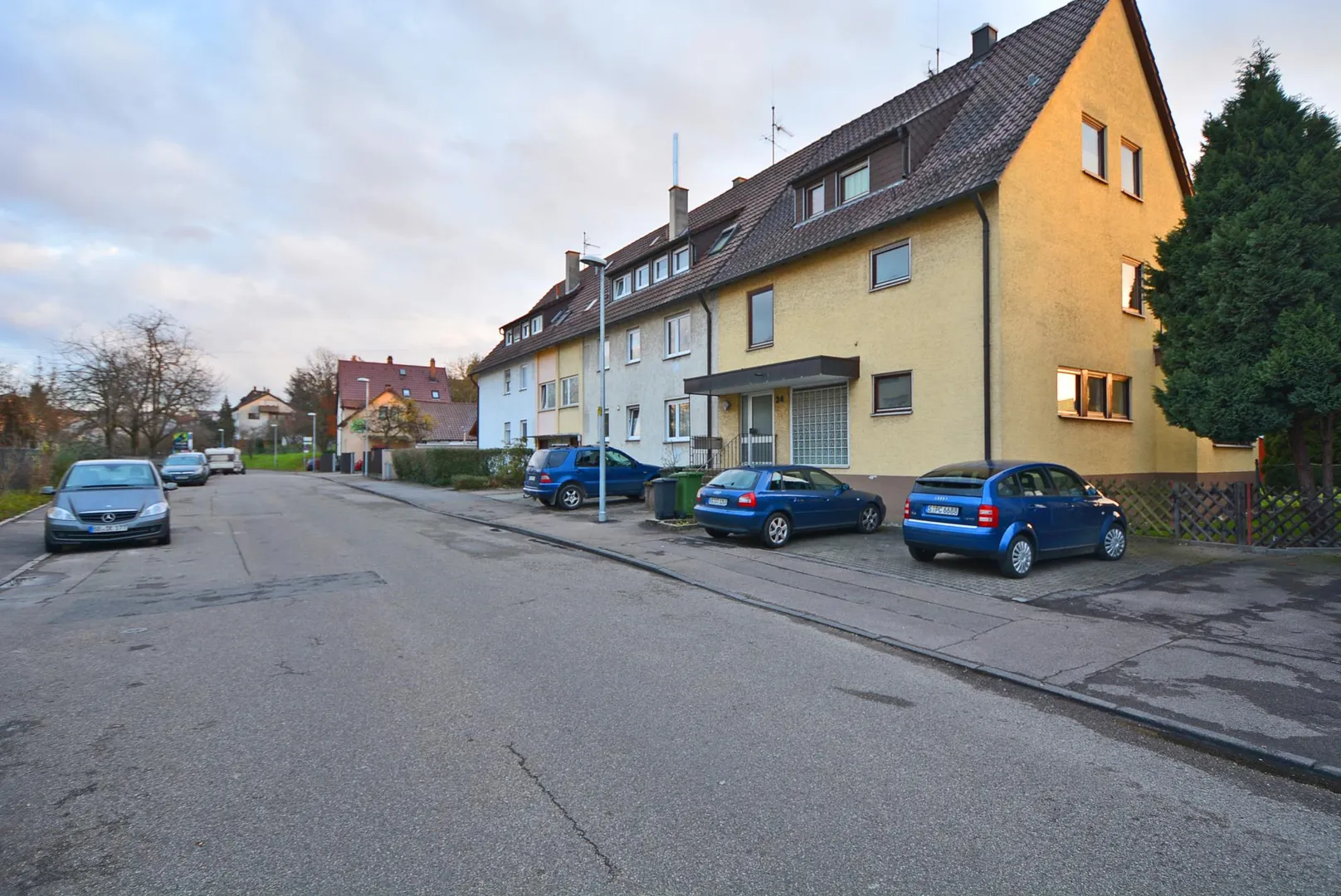 Zur Wohnung gehören ein Abstellraum und ein beheizter Hobbyraum im Untergeschoss sowie zwei Kfz-Stellplätze vor dem Haus.