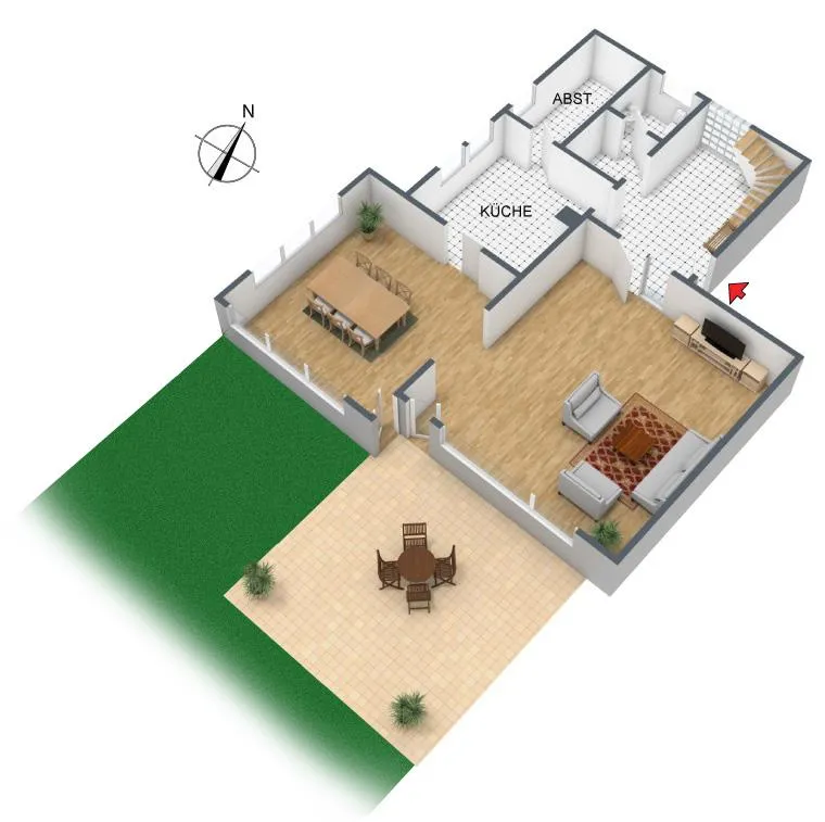 Diese hochwertig ausgestattete 4 ½ Zimmer-Maisonette-Wohnung befindet sich im Erdgeschoss/Obergeschoss.