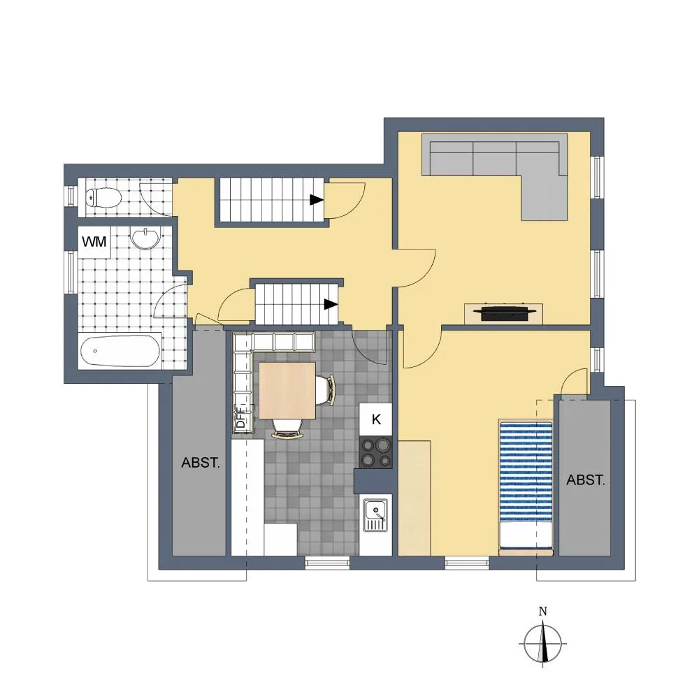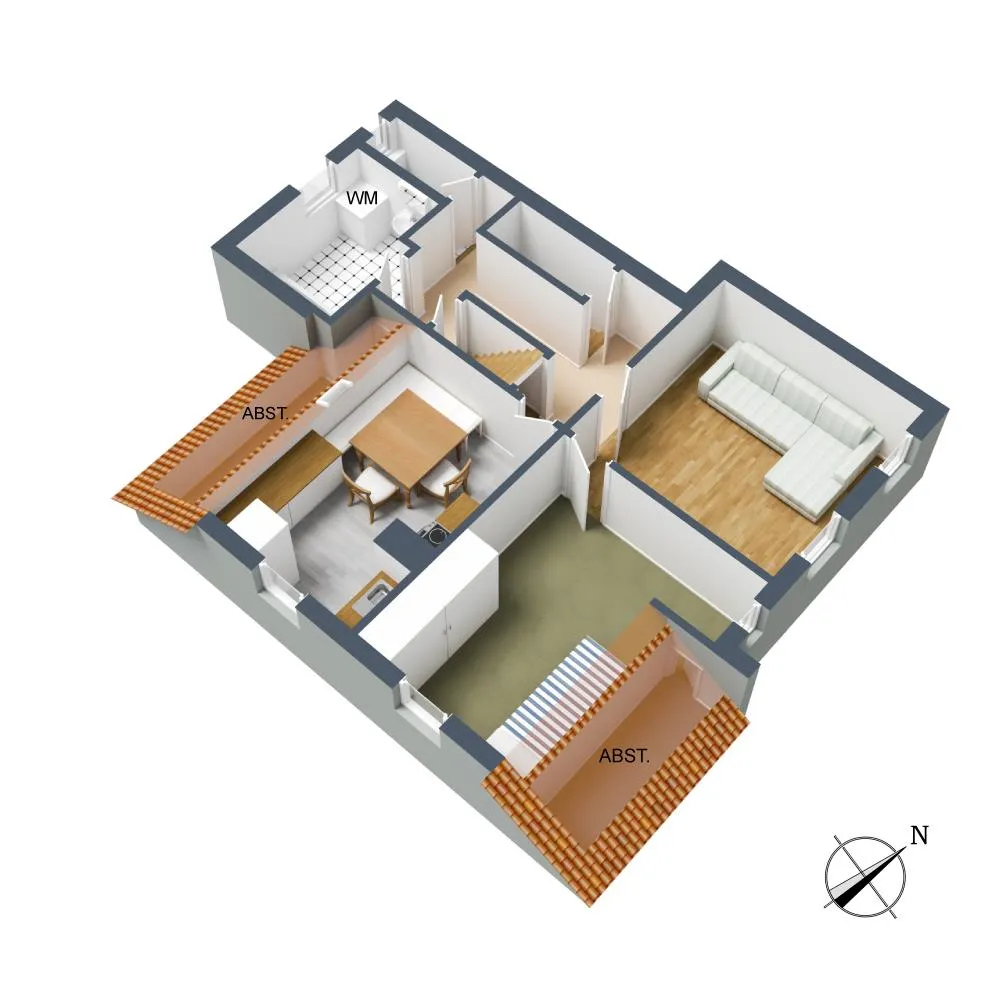 Diese gemütliche 3-Zimmer-Dachgeschoss-Maisonette-Etagen-Wohnung befindet sich im 2. Obergeschoss.