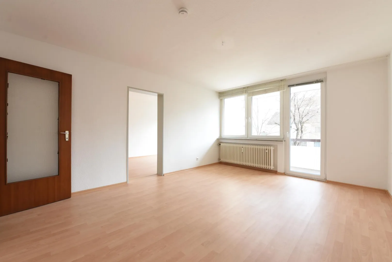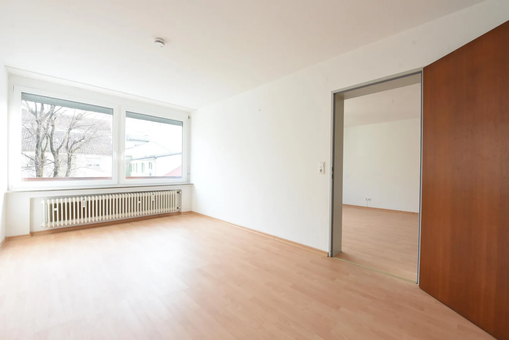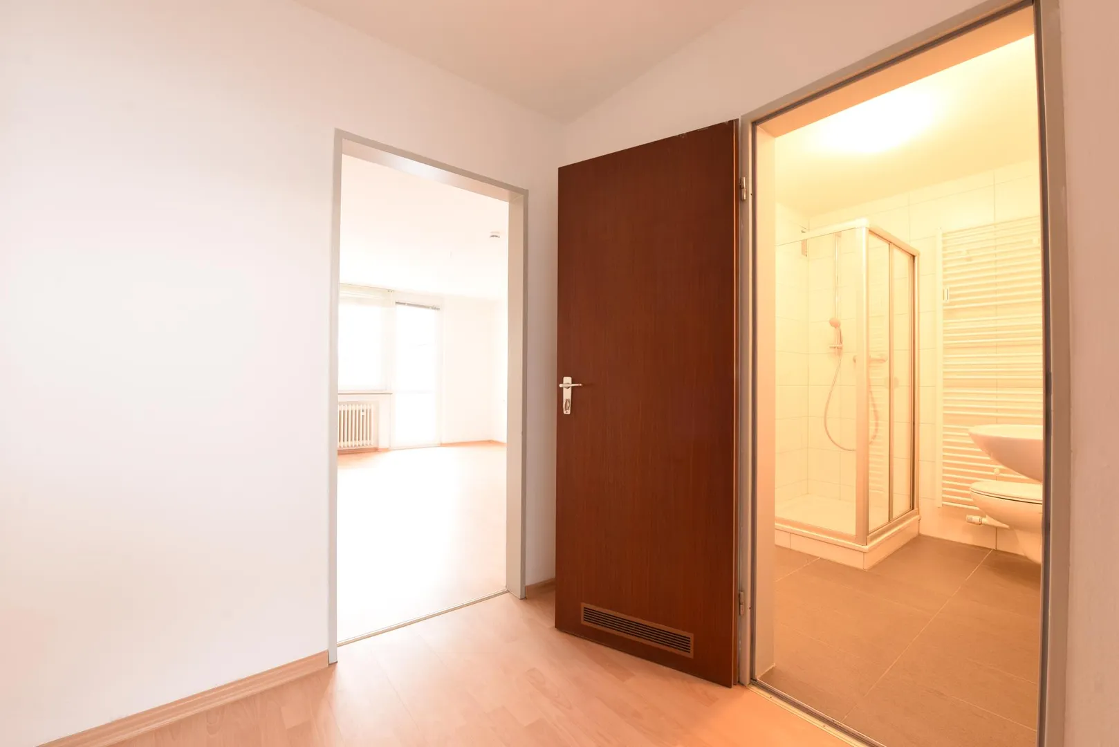 In den Zimmern und im Flur ist Laminat verlegt.