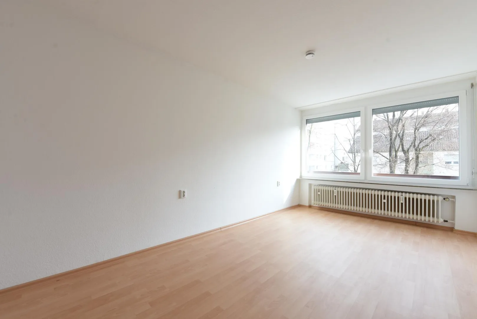 Im Schlafzimmer sind Rollläden vorhanden; im Wohnzimmer Innen-Rollos.