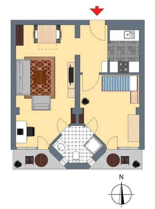 Die Zimmer sind nach Süden ausgerichtet. Von jedem dieser Zimmer ist ein überdachter Süd-Balkon begehbar.