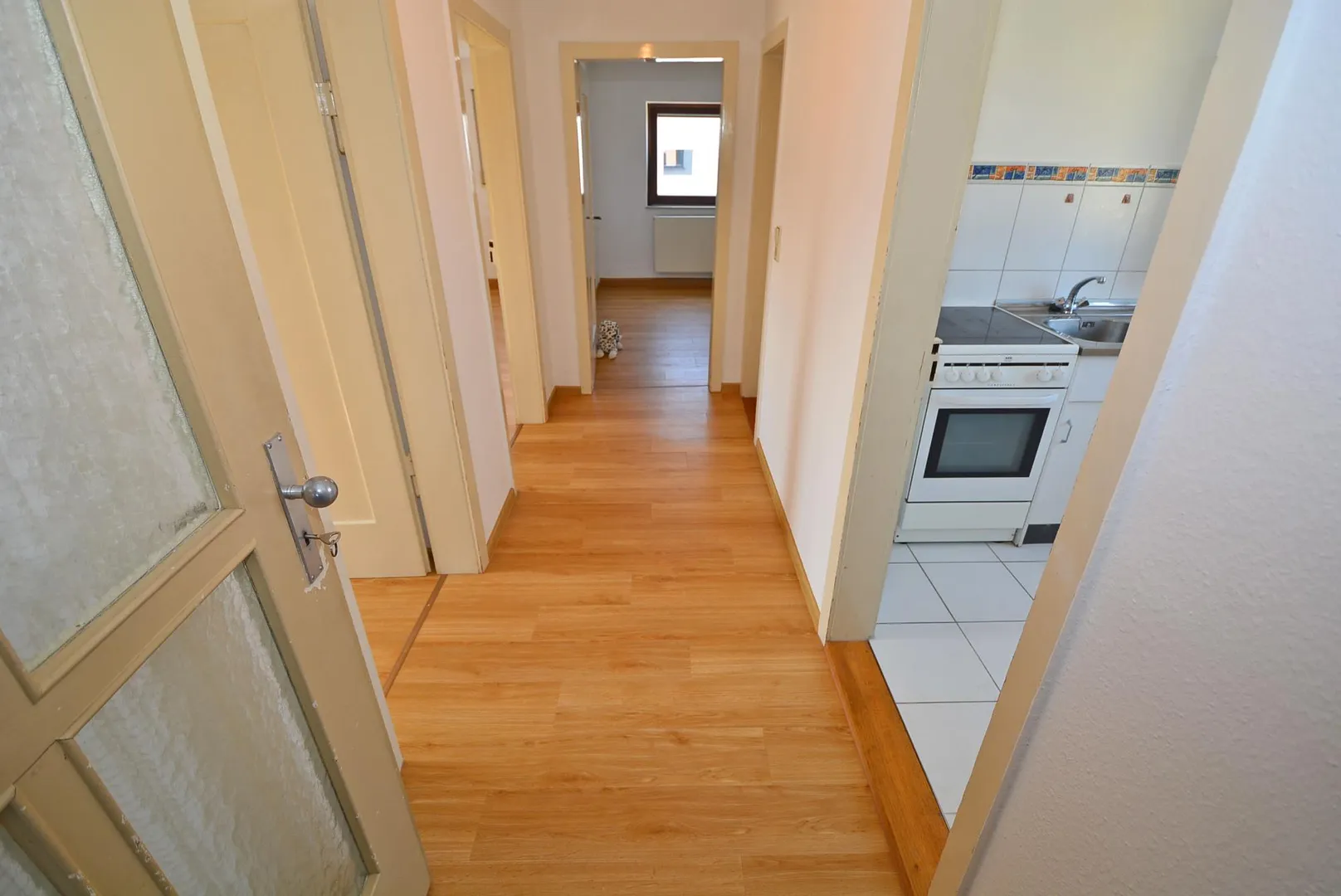 Alle Zimmer sind vom Flur aus begehbar. Das Badezimmer ist mit einem Fenster ausgestattet.