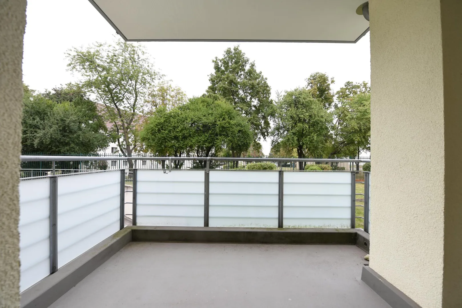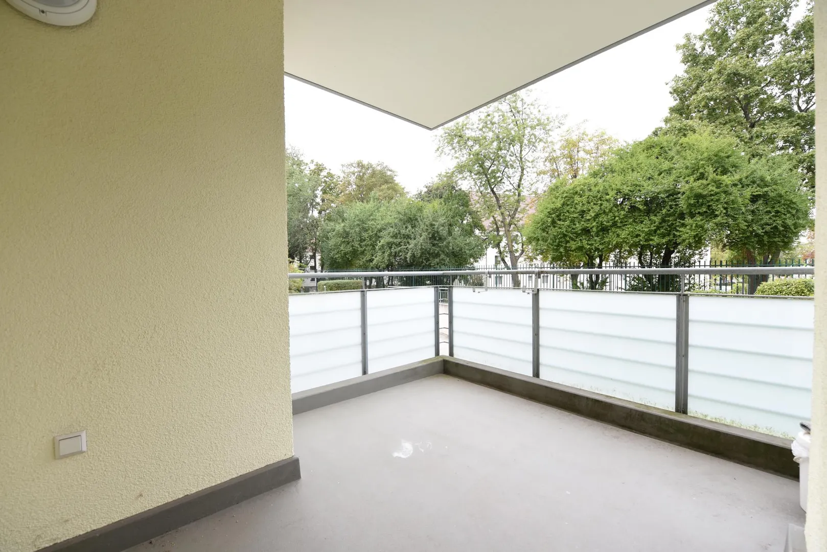 Der ca. 7 m² große und überdachte Nord/West-Balkon ist über das Wohnzimmer begehbar.