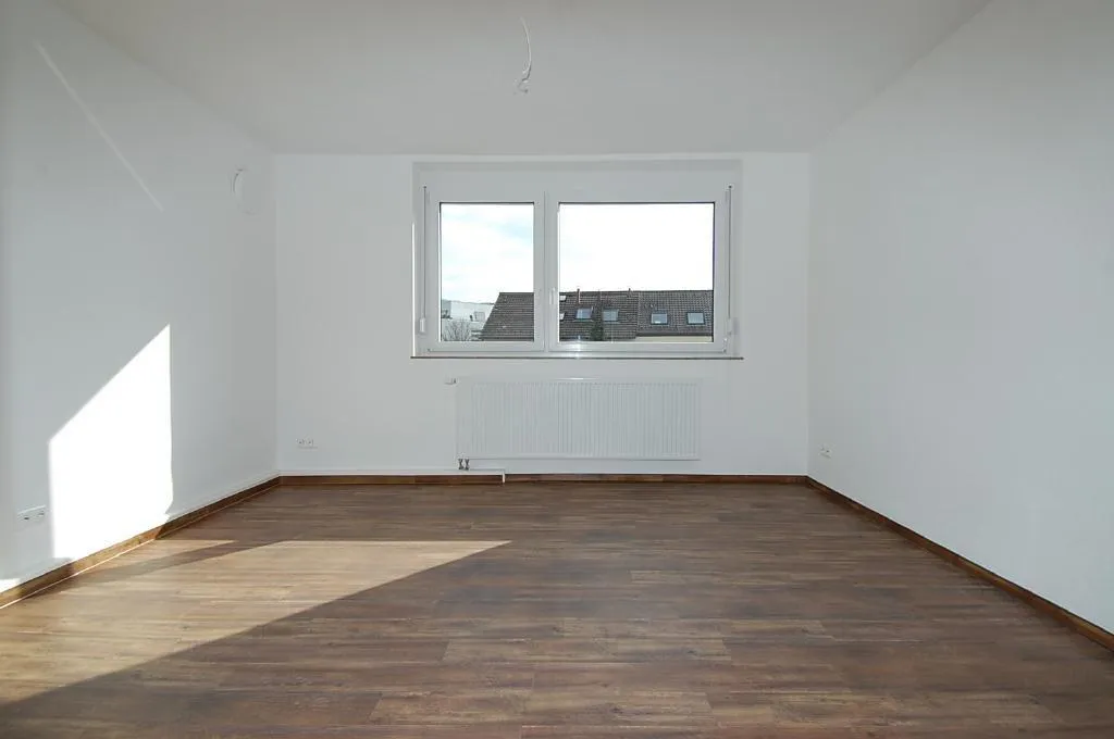 Das sonnige Wohnzimmer ist nach Süd-Osten ausgerichtet und mit hochwertigem Laminatboden ausgestattet.