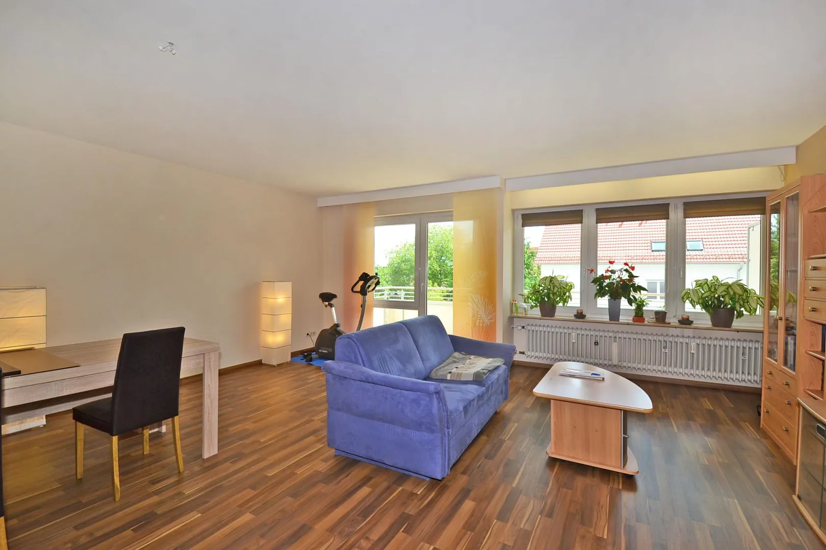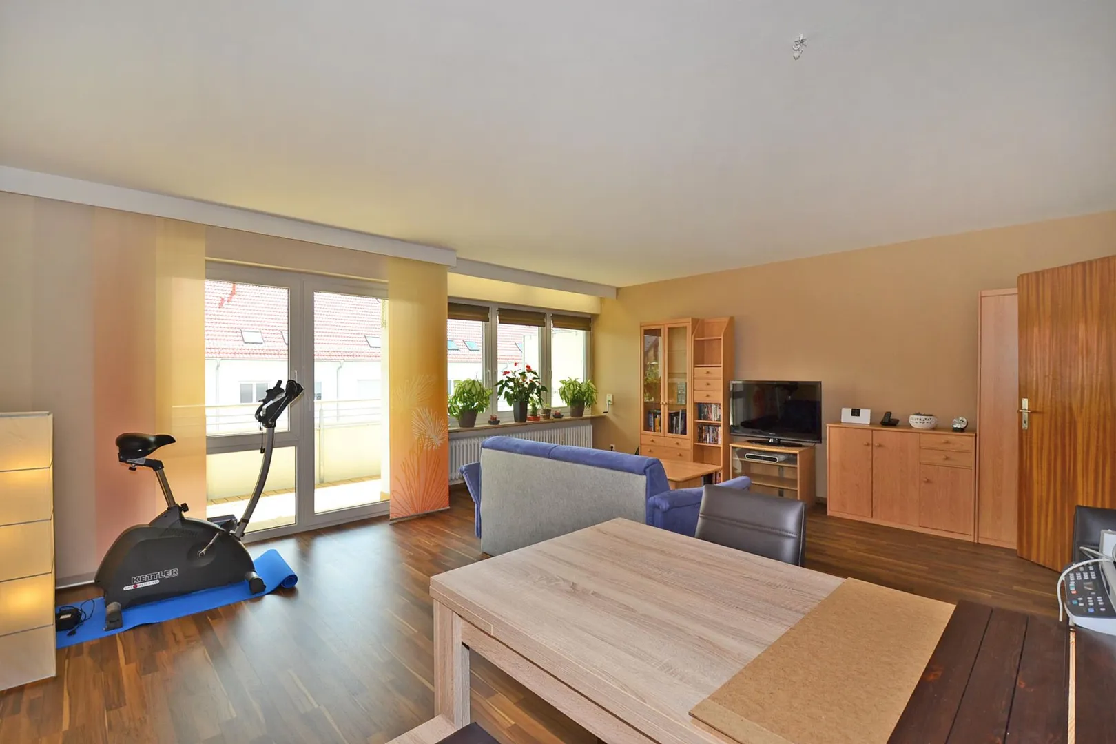 Das 29 m² große Wohnzimmer ist nach Süden ausgerichtet. Von hier aus gelangen Sie auf den sonnigen und überdachten Süd-Balkon.