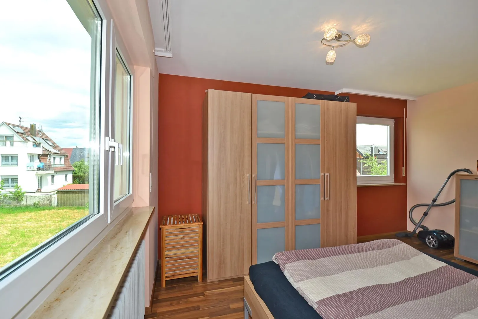 Das helle Schlafzimmer ist nach Nord-Osten ausgerichtet.