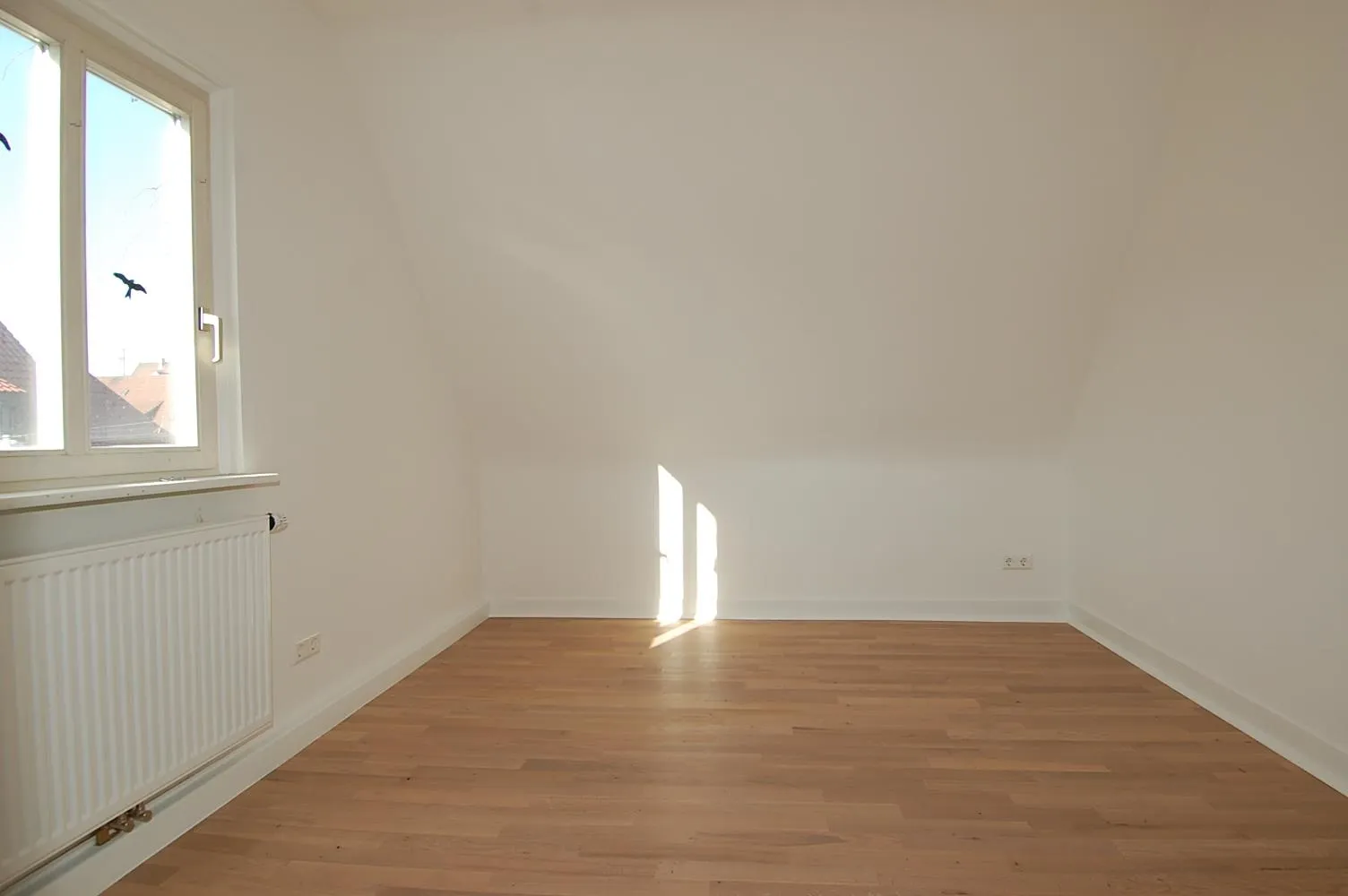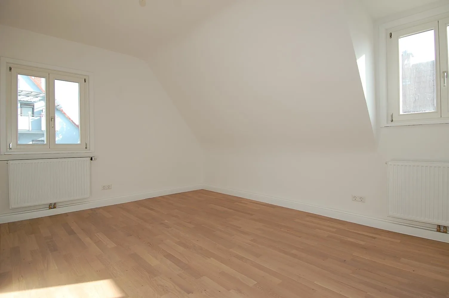 Bitte studieren Sie den Grundriss genau und beachten Sie, dass durch die Dachschrägen wenig Stellfläche für Schränke vorhanden ist.