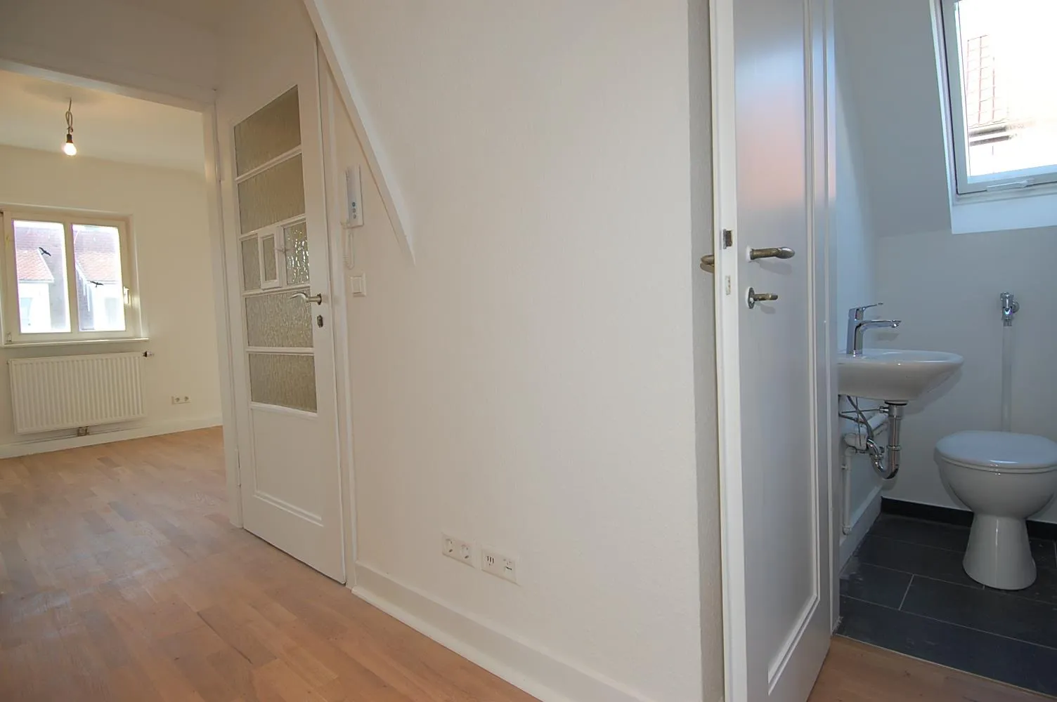 Diese frisch modernisierte 2 Zi.-Wohnung befindet sich im 2. Obergeschoss (Dachgeschoss mit Schrägen) eines 3-Familienhauses.