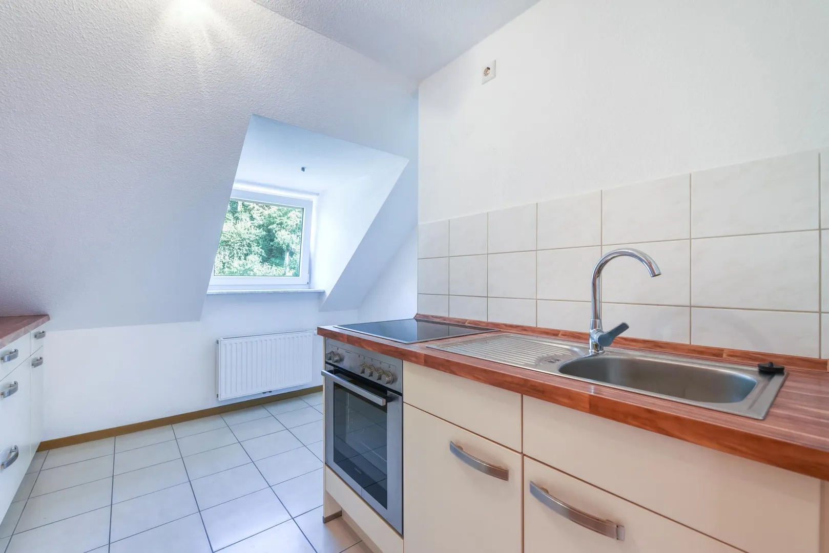 Diese gemütliche 2-Zimmer-Dachgeschoss-Etagen-Wohnung für eine sportliche Einzelperson befindet sich im 3. Obergeschoss (von der Straße 4. Obergeschoss).