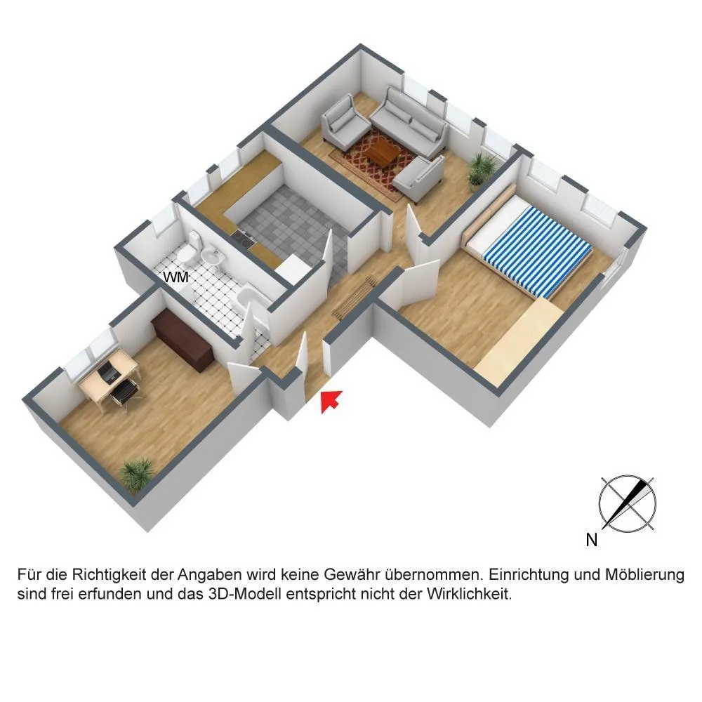 Trotz sorgfältiger Prüfung der im Exposé gemachten Angaben, können wir für die Richtigkeit und Vollständigkeit der Angaben keine Haftung übernehmen. Bitte beachten Sie, dass die Immobilie auf den Bildern größer wirkt als sie in der Realität ist.