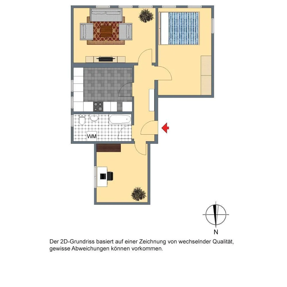 Der Grundriss ist gut. Jeder Raum ist vom Flur aus erreichbar. Das Badezimmer verfügt über ein Fenster.