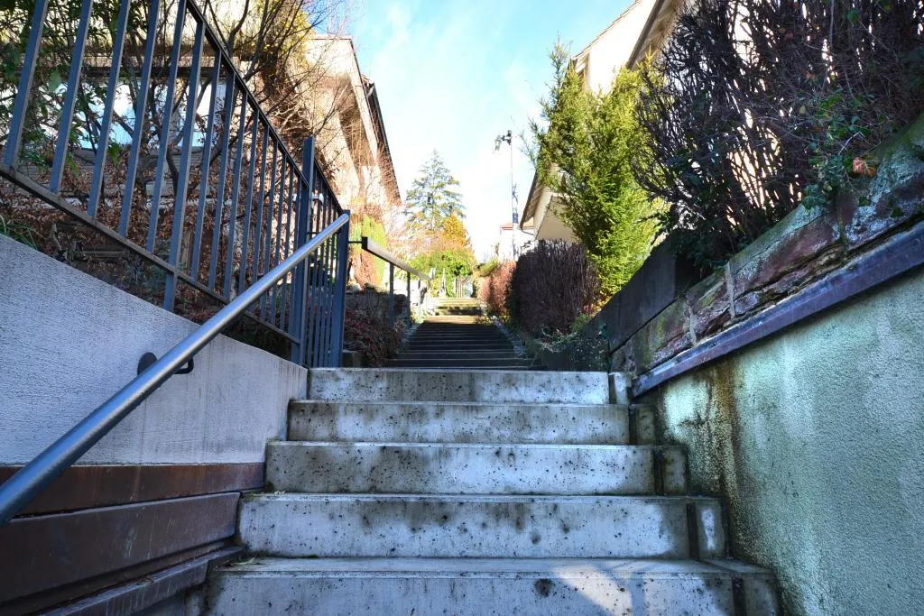 Der Hauseingang ist über eine Staffel mit 50 Treppenstufen erreichbar.
