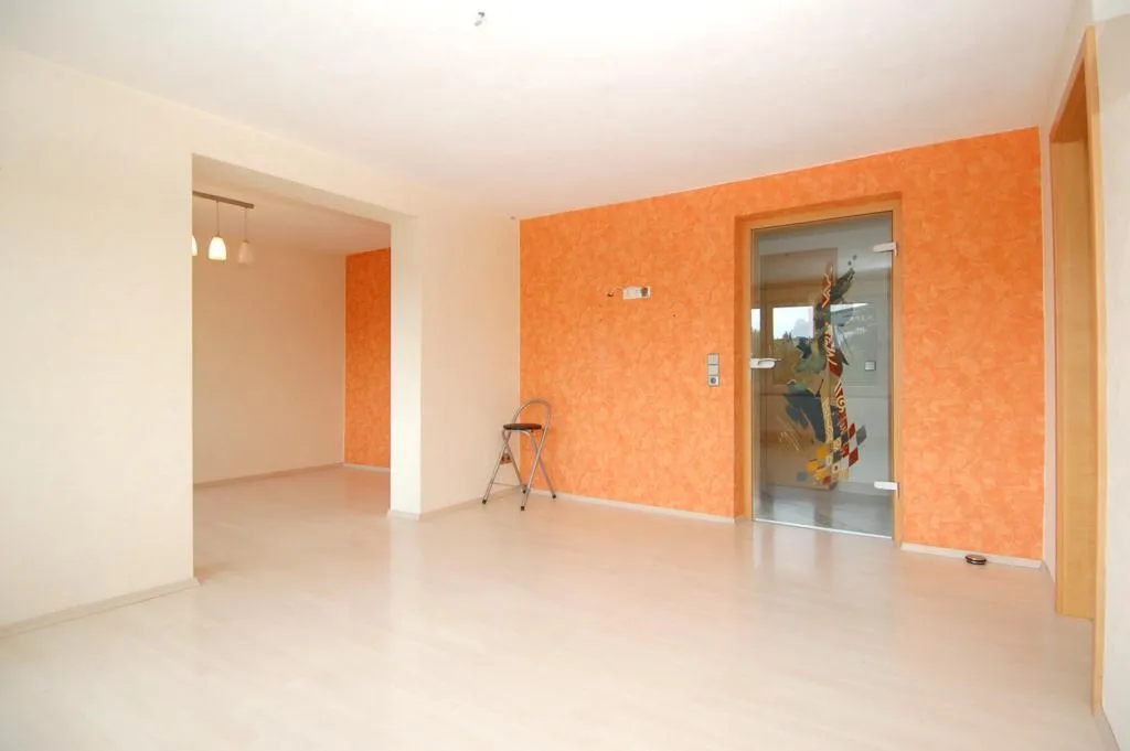 Das Schlafzimmer ist über das Wohnzimmer begehbar. Im Schlafzimmer befinden sich ein Einbauschrank, welcher verbleiben muß. Im Schlaf- und im Arbeitszimmer sind die Holzdecken abgehängt und mit Halogenlampen ausgestattet.