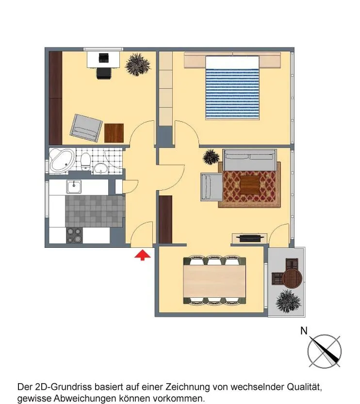 Der ca. 2,5 m² große und überdachte Süd-Balkon ist über das Wohnzimmer begehbar.