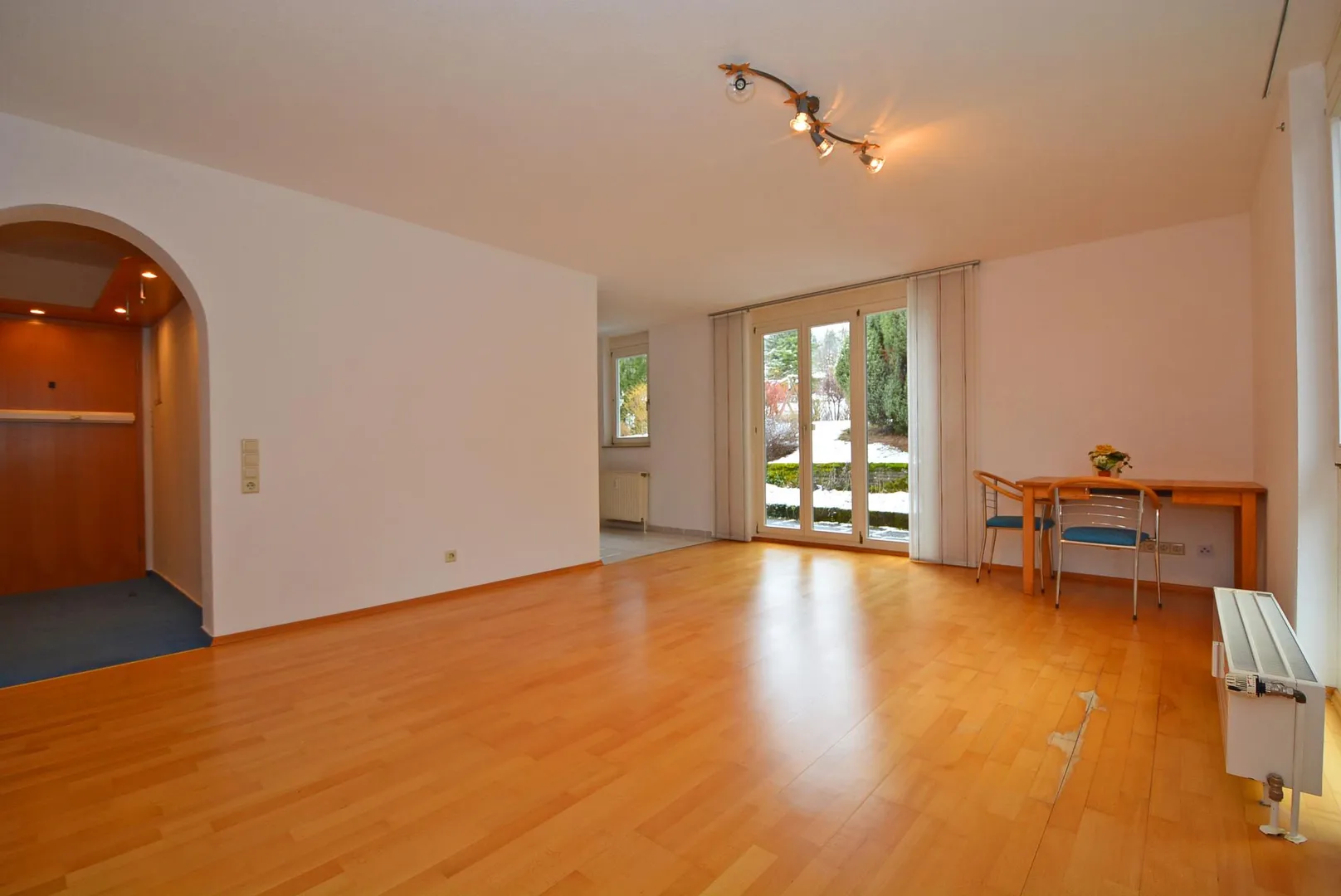 Der Grundriss der Wohnung ist gut: Alle Zimmer sind vom Flur aus begehbar. Die Küche ist zum Essbereich hin offen. Über den Wohn-/Essbereich ist die ca. 15 m² große Nord-Terrasse und der Garten begehbar.