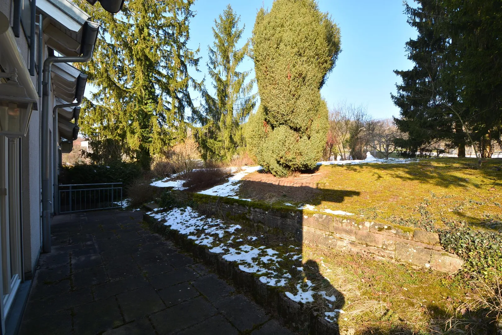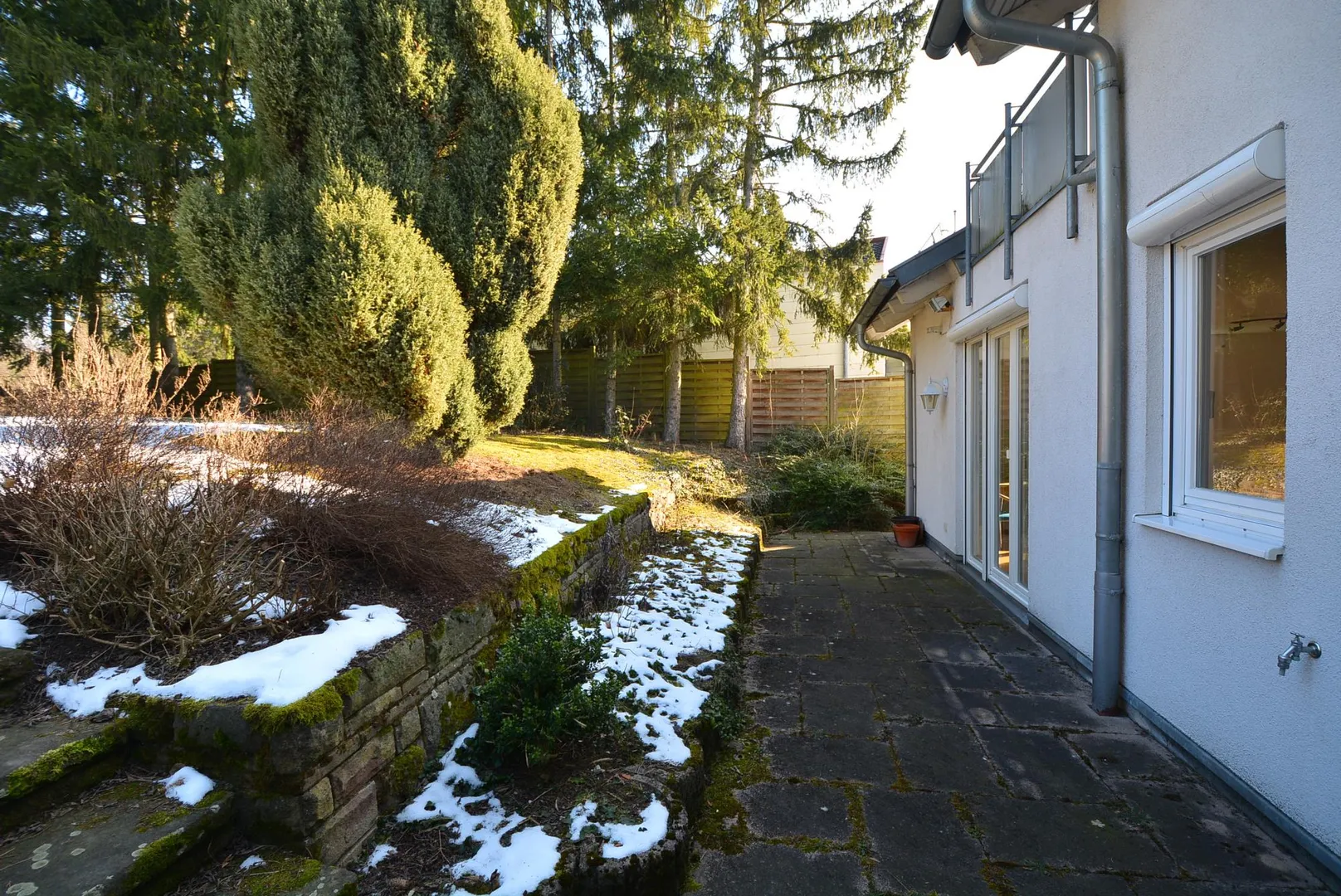 Aufgrund der Hanglage ist die Terrasse auf der Nordseite ebenerdig.