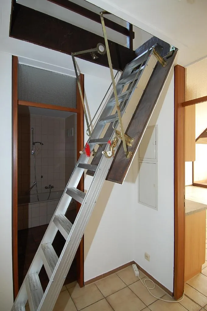Im Bühnenzimmer ist Teppichboden verlegt. Das Bühnenzimmer erreichen Sie über eine Einschubtreppe im Flur.
