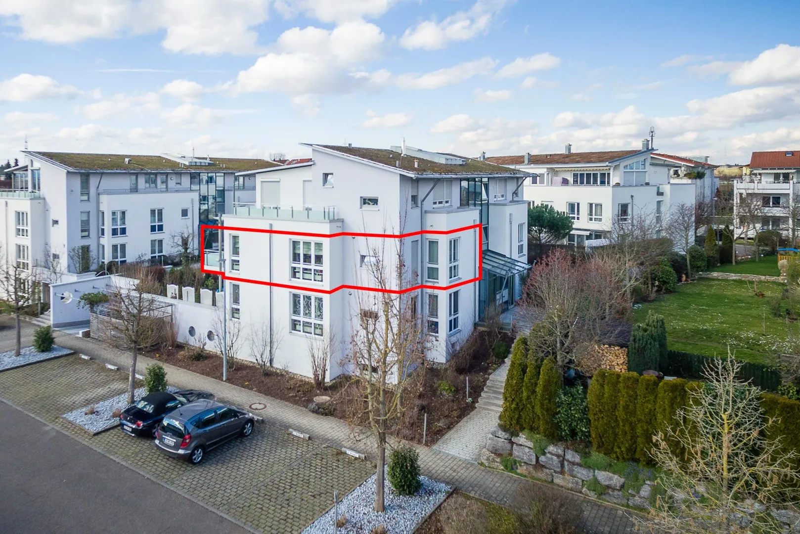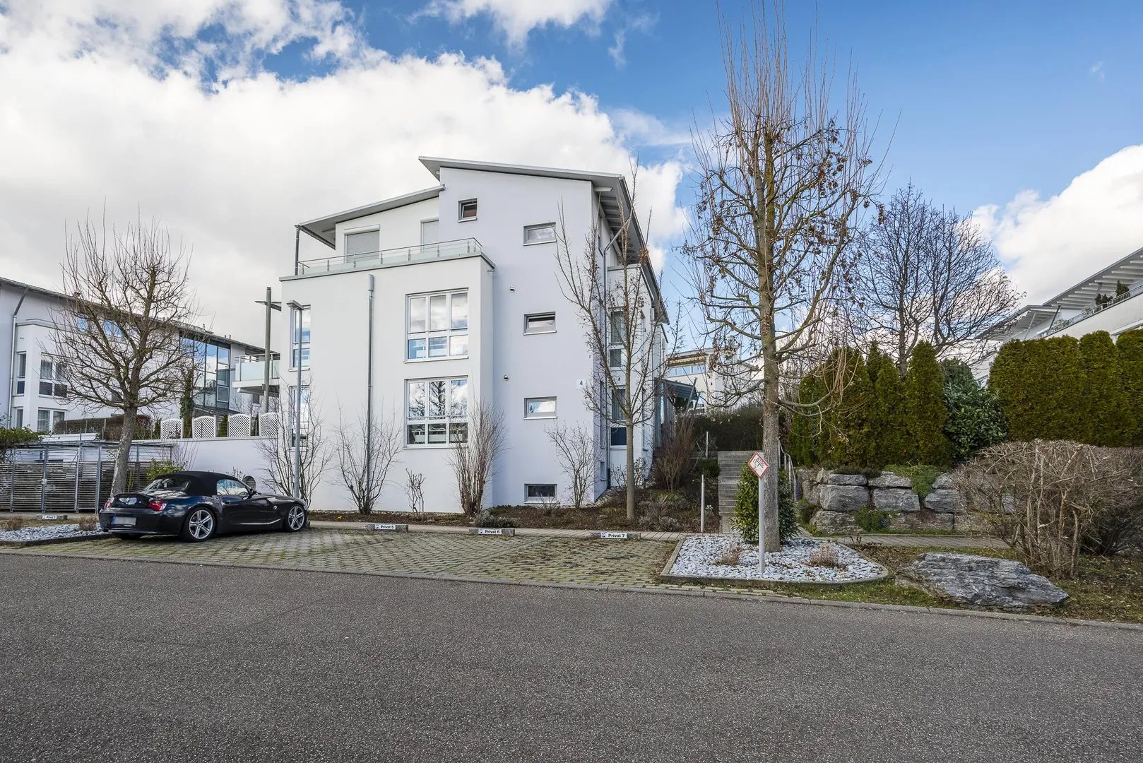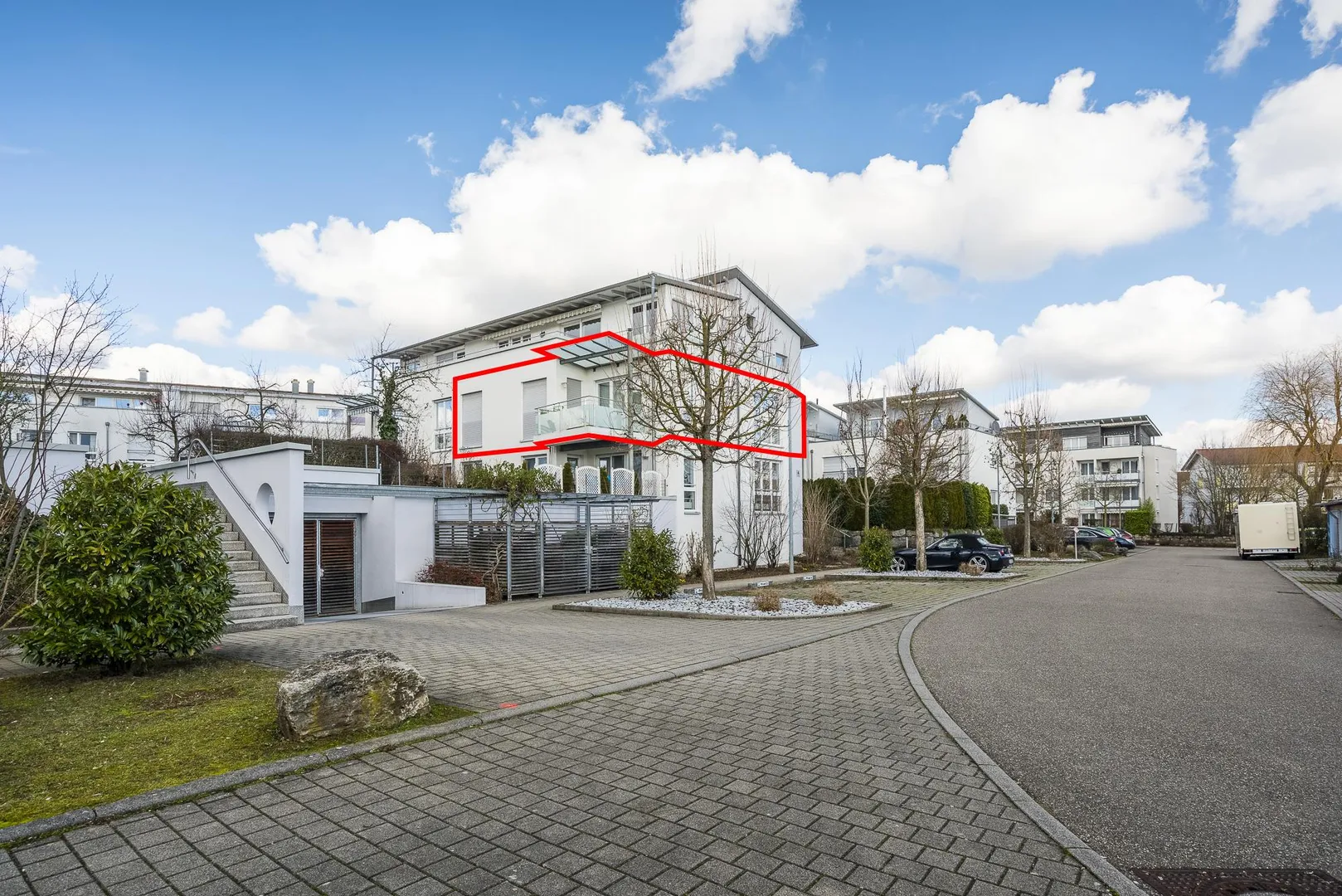Zur Wohnung gehören ein ca. 7,5 m² großer Abstellraum im Untergeschoss, eine abgeschlossene TG-Box und ein Kfz-Außenstellplatz.