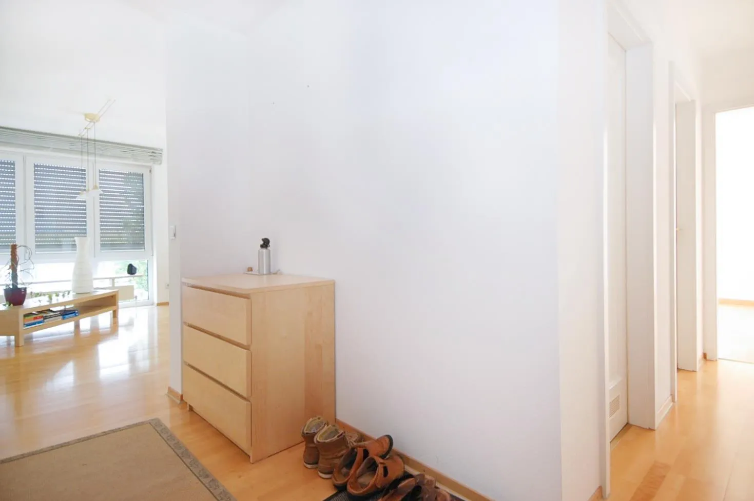Im Wohnzimmer sind die Rollläden elektrisch bedienbar. Zusätzlich sind an den Fenstern im Wohn-/Esszimmer und in der Küche Innen-Rollos vorhanden.